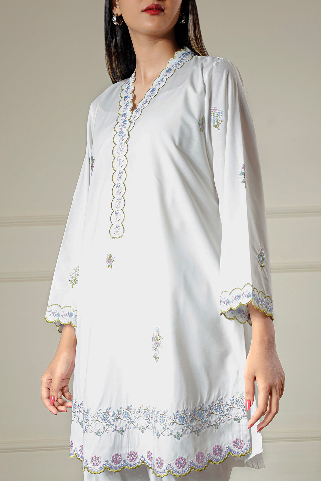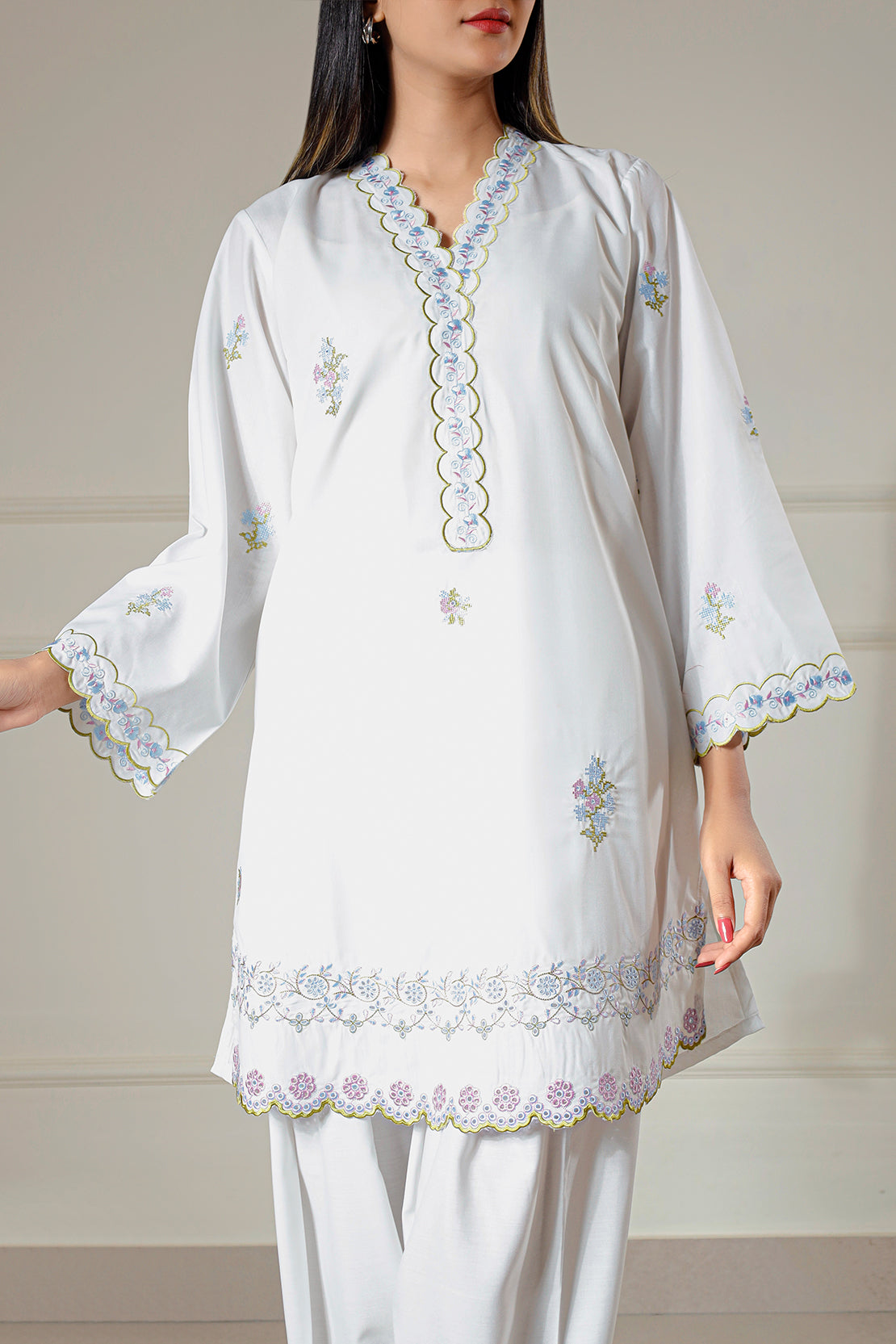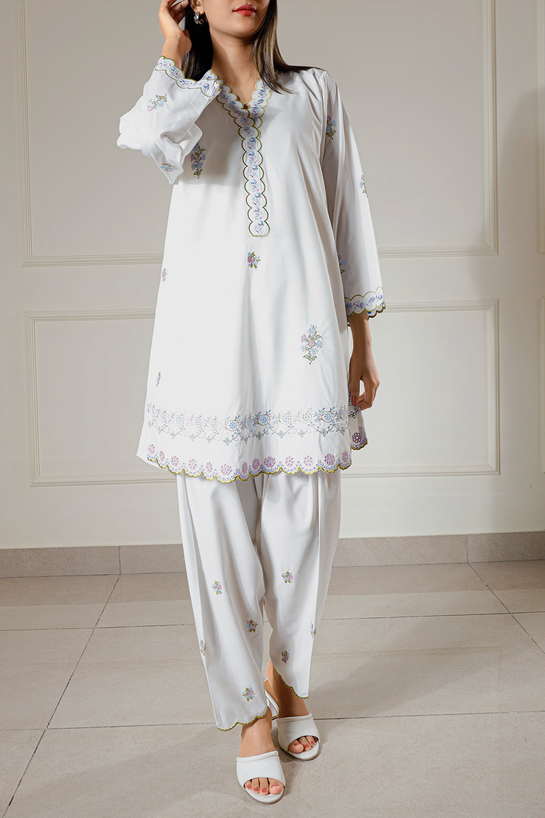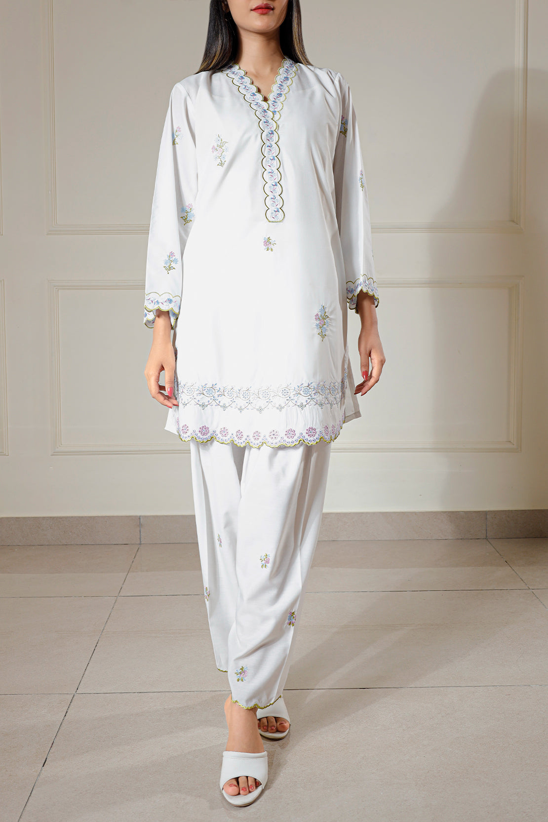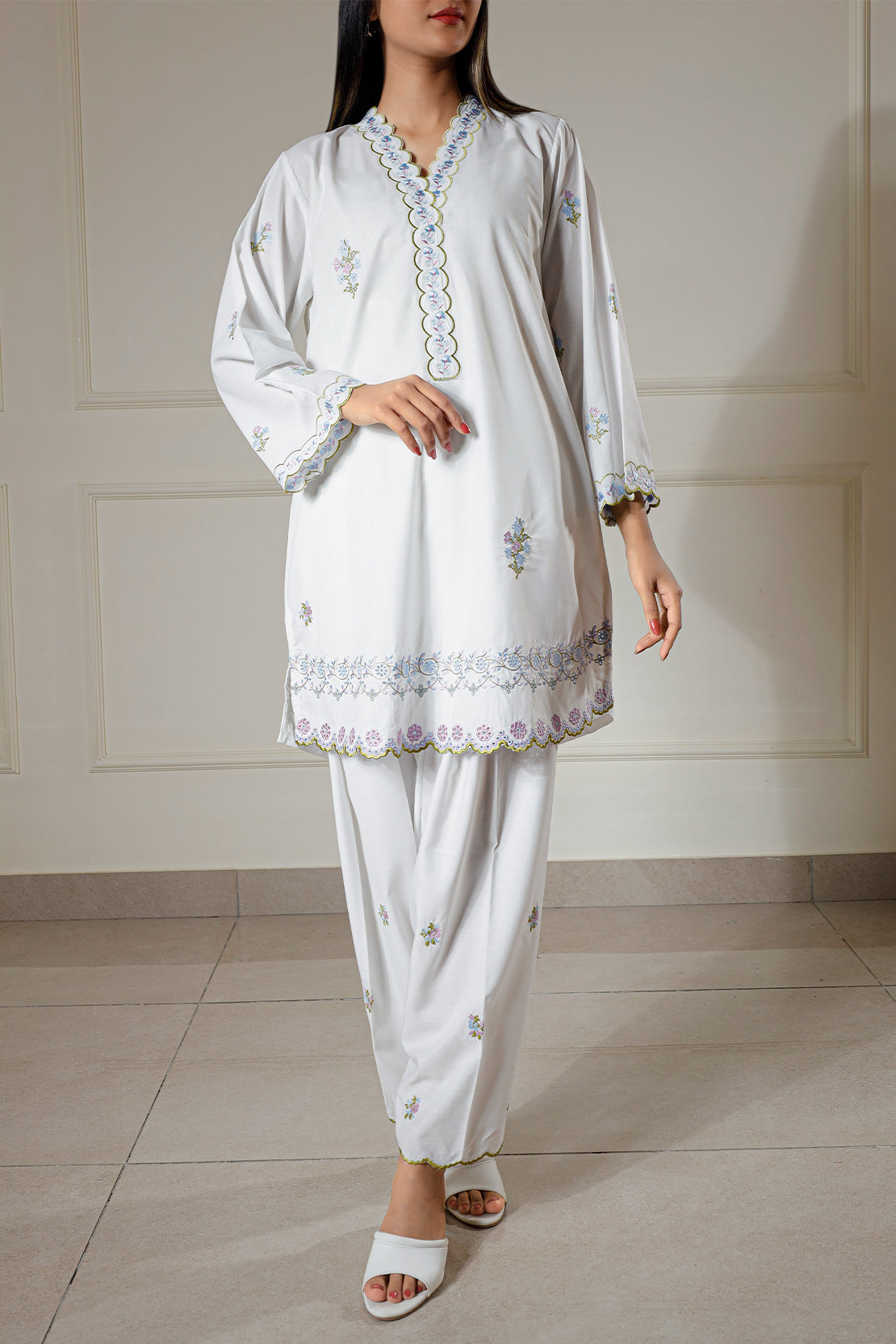 Define refined minimalism with Saya’s Solid Embroidered Polyester Stitched 2 Piece. This elegant co-ord set includes a solid-colored, fully stitched shirt adorned with intricate embroidery, paired with a matching trouser. Made from flowy polyester fabric, it’s a graceful and low-maintenance choice for everyday and semi-formal wear.