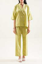 Embrace Minimalist Charm With This Solid Slub Viscose Stitched 2-Piece Shirt And Trouser By SAYA. Crafted From High-Quality Slub Viscose, The Shirt Offers A Subtle Textured Finish That Enhances The Richness Of The Fabric. Paired With A Coordinated Trouser, This Ensemble Delivers A Polished Yet Relaxed Look, Making It Ideal For Everyday Elegance, Casual Gatherings, Or Workwear That Prioritizes Comfort Without Compromising On Style.