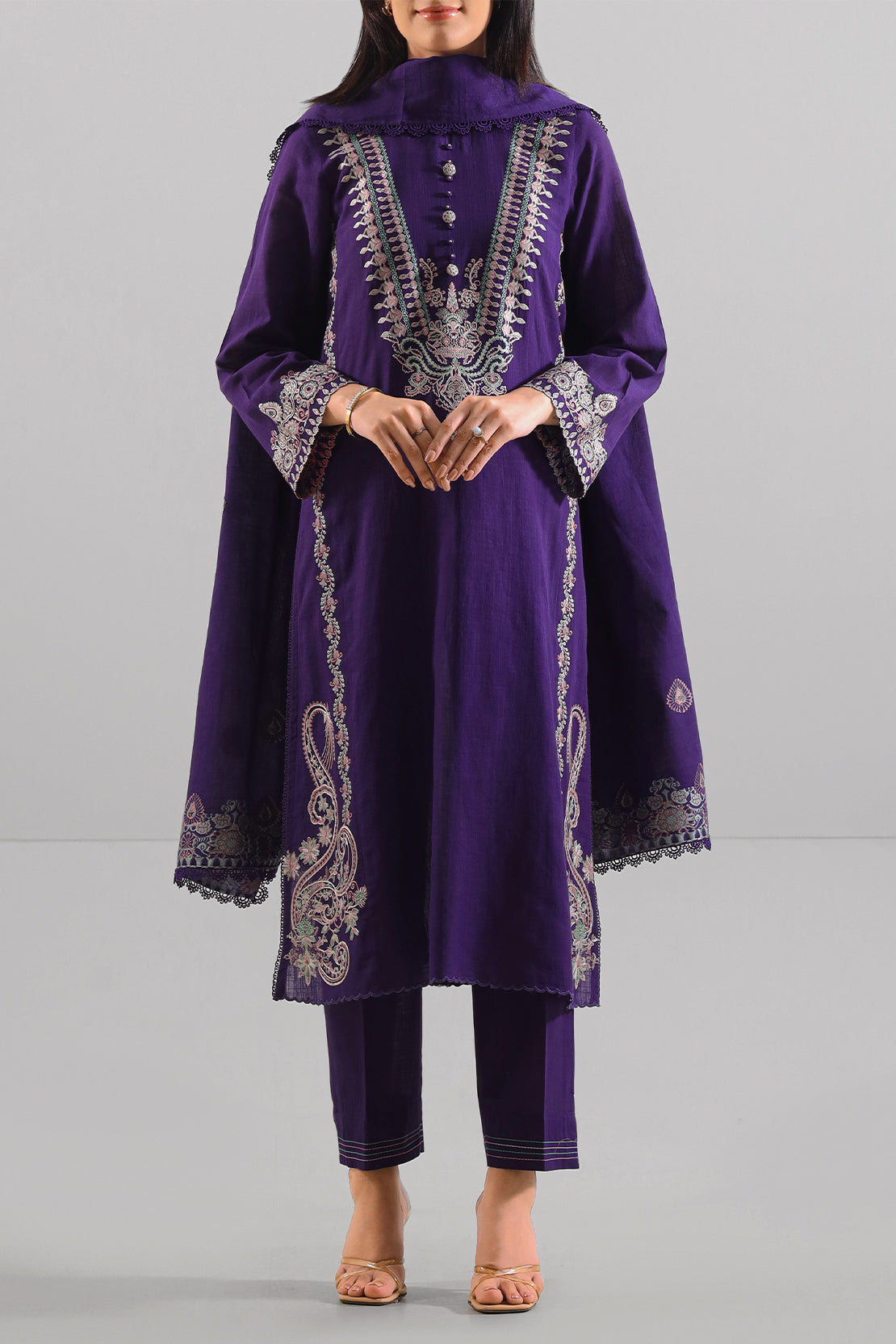Unstitched Solid Embroidered Cotton Khaddar 3 Piece