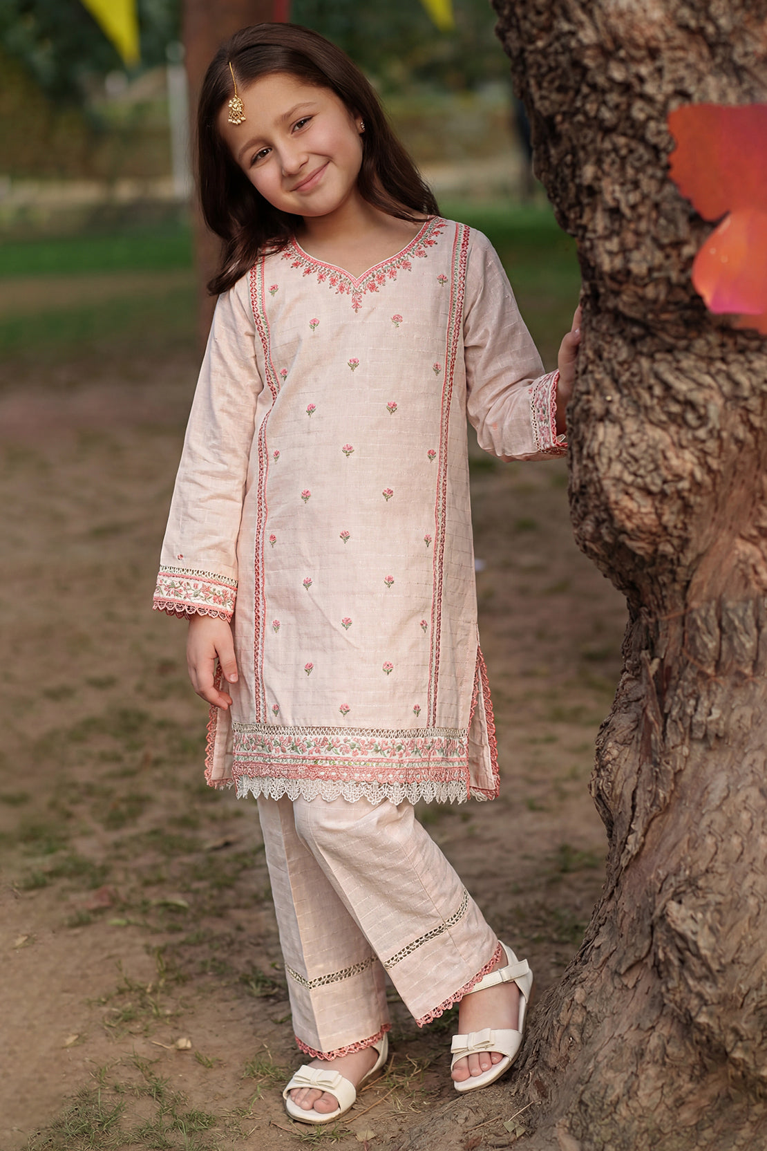 Embroidered Cotton Jacquard Stitched 2 Piece (Shirt/trouser) For Kids