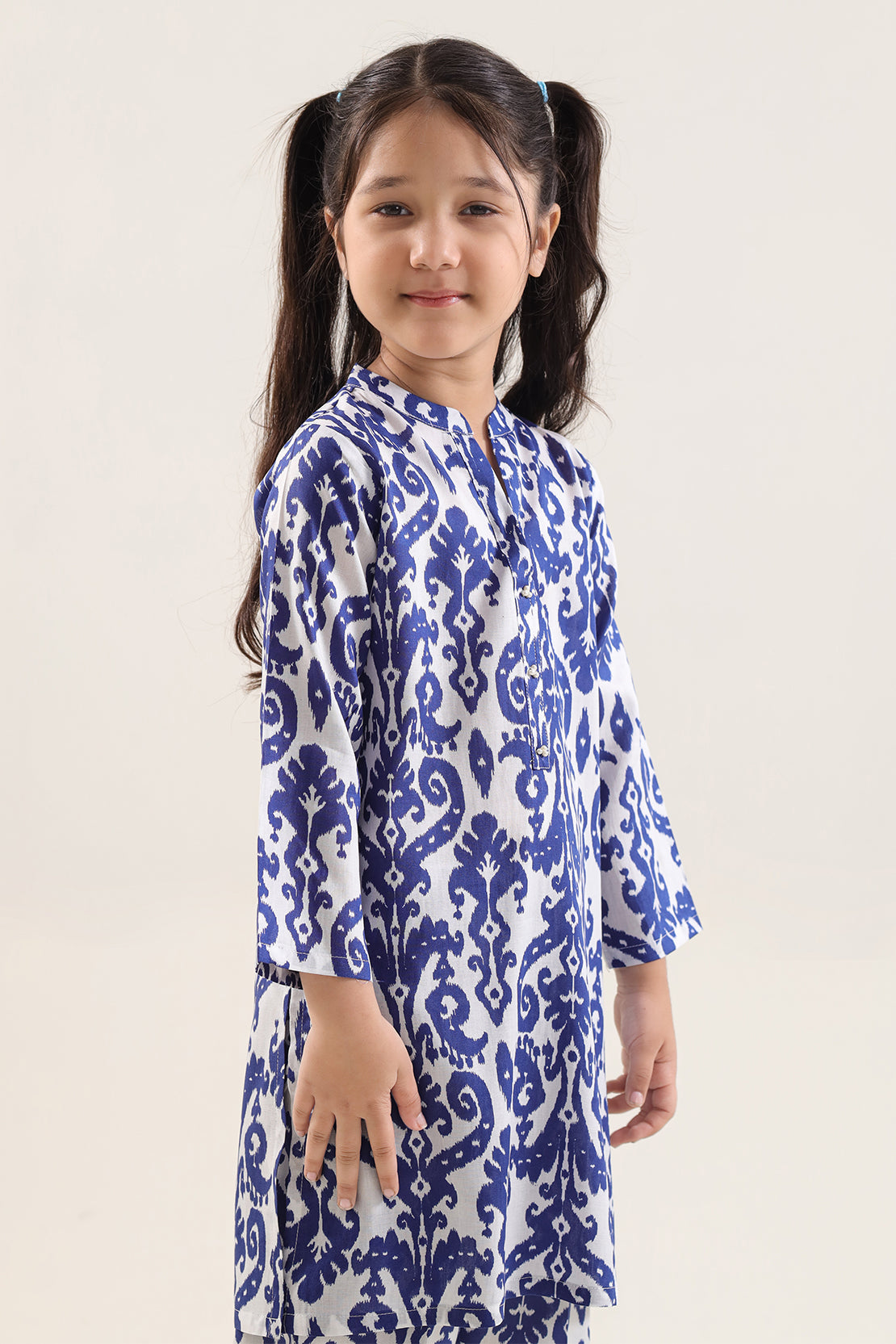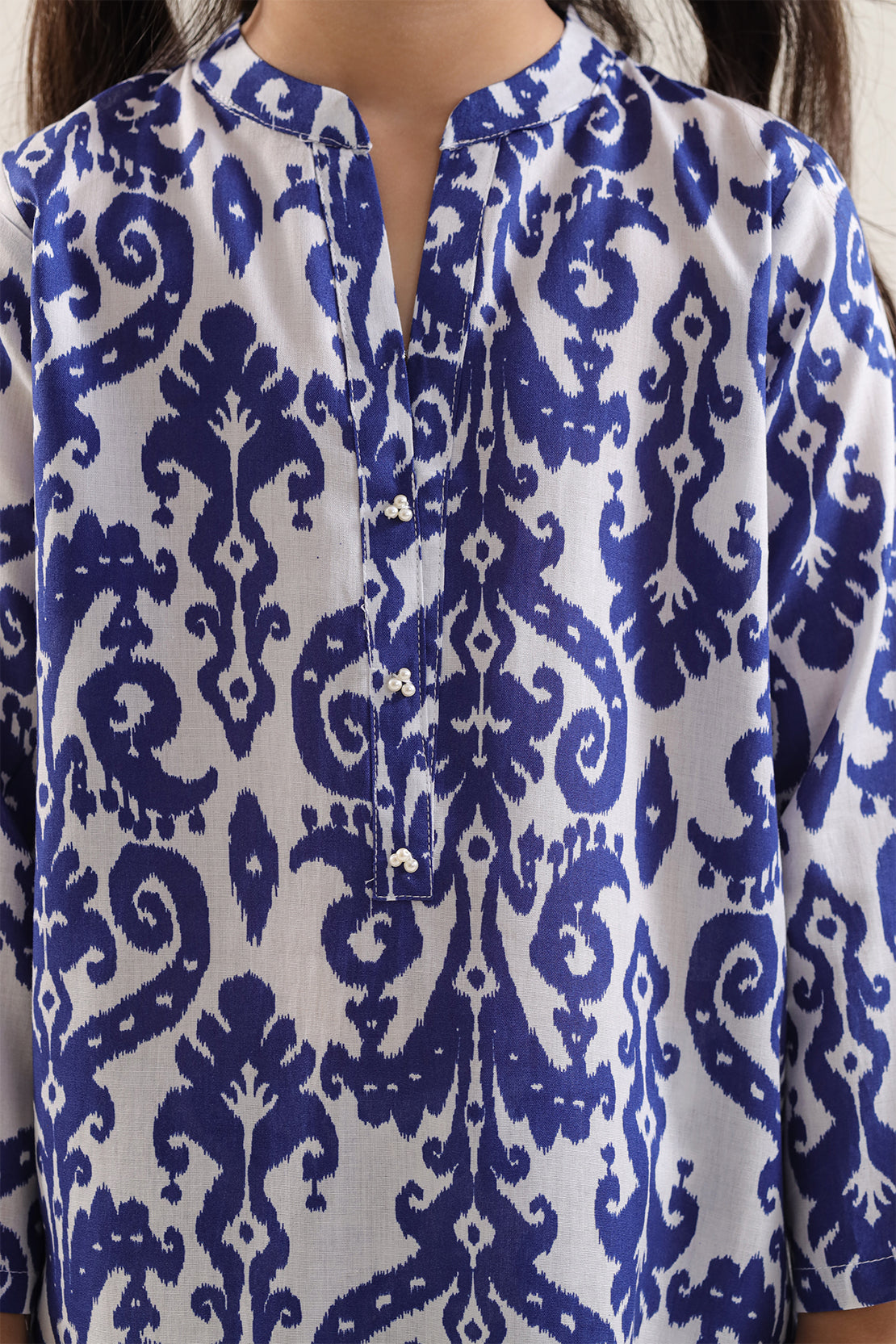 Treat Your Little One To The Elegant Comfort Of The SAYA Printed Arabic Lawn 2-Piece Set, Crafted From Arabic Lawn. This Light, Breathable Fabric Offers A Smooth, Texture With A Crisp Yet Gentle Drape — Perfect For Warm Days And Active Play. The Shirt Features A Rich, All-Over Print Inspired By Arabic Motifs, Bringing A Cultural Touch That’s Both Playful And Refined. The Trouser Comes With A Straight Cut And An Elastic Waistband, Making It Easy To Wear And Comfortable For Everyday Movement.