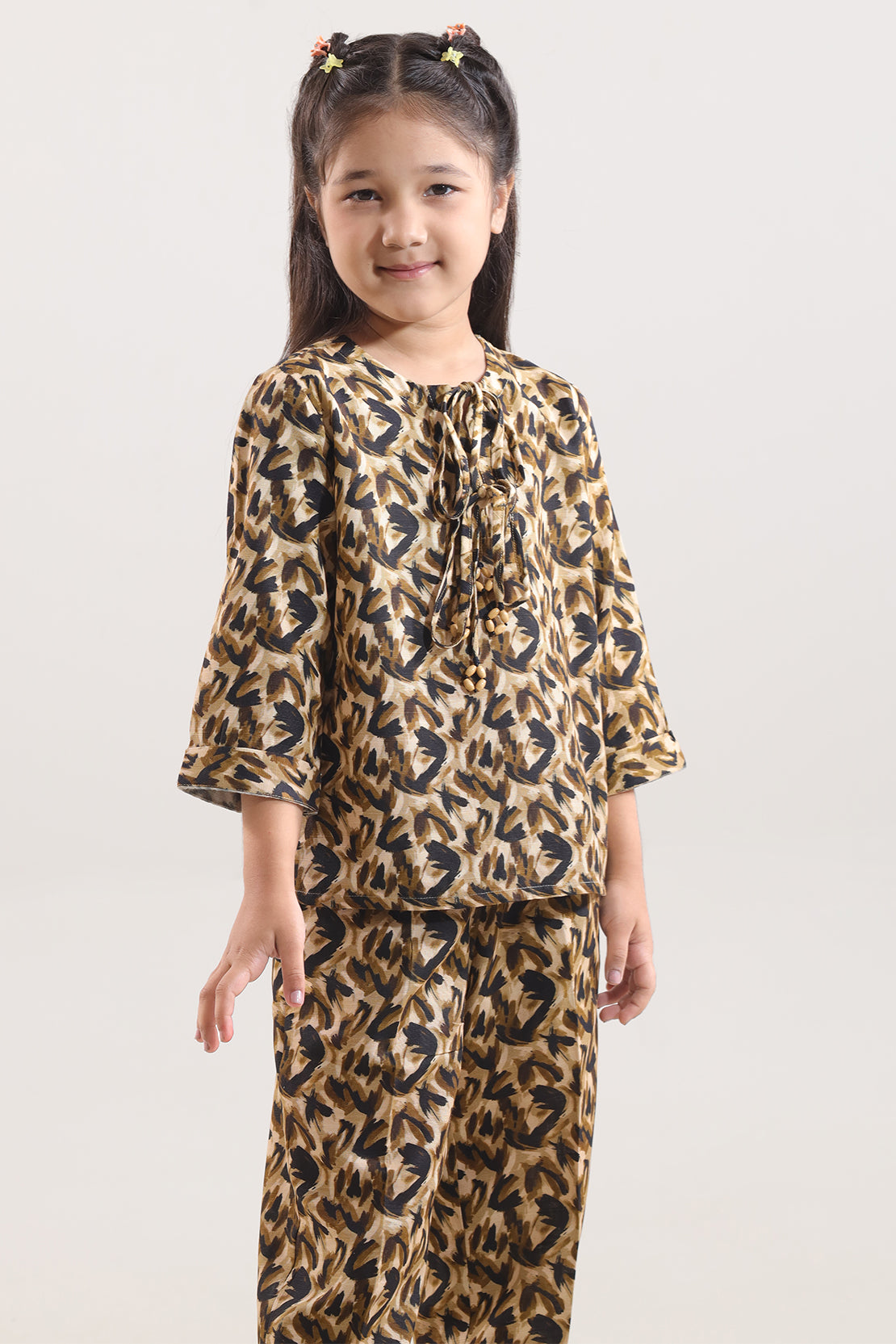 Wrap Your Child In Heritage-Inspired Comfort With This Two-Piece From SAYA, Tailored In Khaddar Fabric Known For Its Durable. The Shirt Features A Delicate Print That Adds Playful Elegance, While The Coordinated Trouser Offers A Harmonized, Polished Finish. Khaddar’s Dense Weave Naturally Traps Warmth Through Tiny Air Pockets, Making This Set An Excellent Choice For Cooler Weather.