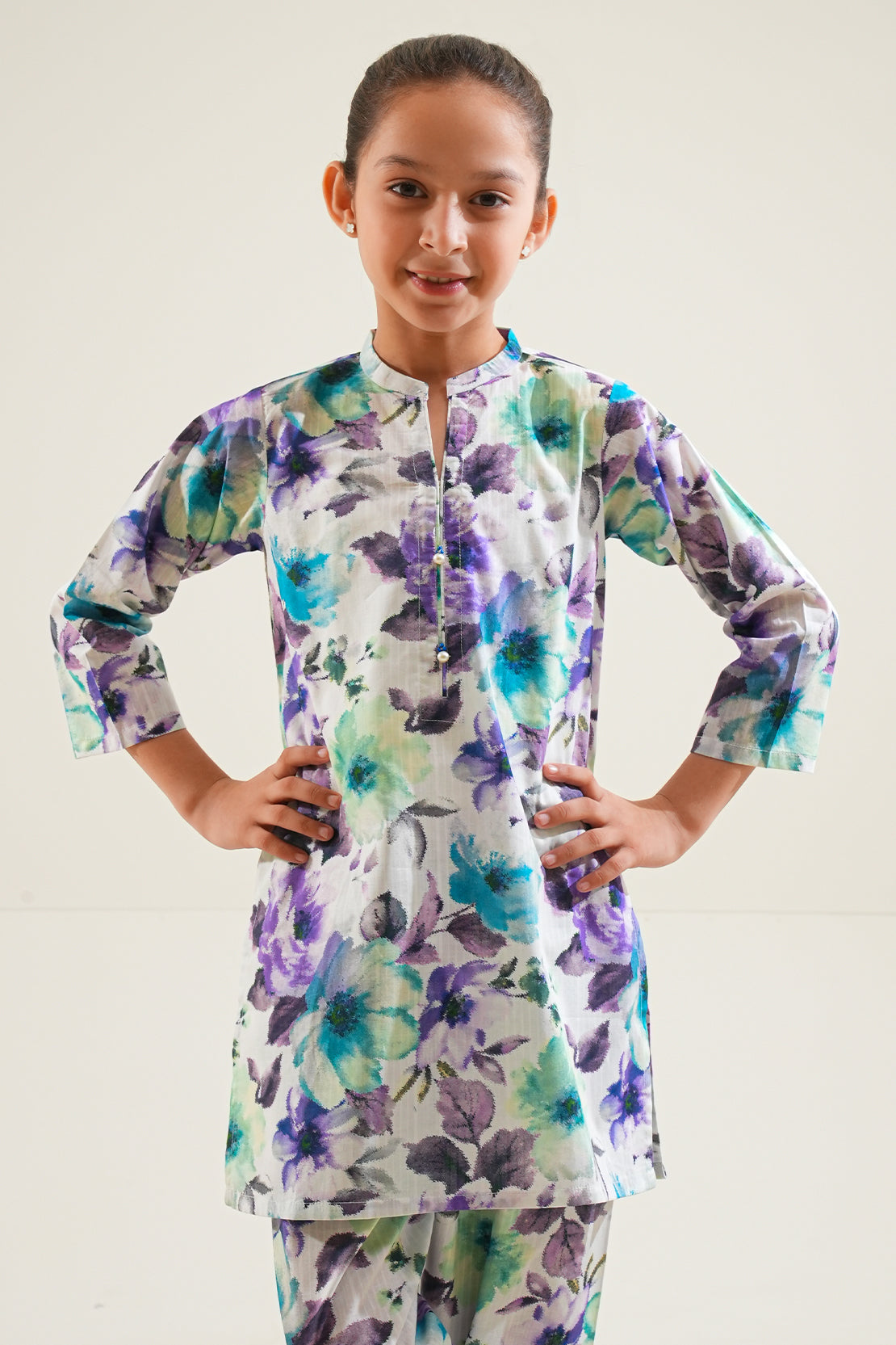 Printed Lawn Stitched 2-Piece Shirt & Trouser Set By SAYA In Rich Lilac, Crafted From Soft, Breathable Lawn Fabric To Keep Your Child Comfortable All Day. The Shirt Features A Delicate Playful Print That Adds Joy Without Overpowering, While The Trouser Offers A Relaxed Fit Perfect For Movement. Ready-To-Wear Tailoring With Neat Stitching Ensures Smart Looks For School, Outings, Or Family Gatherings. A Balanced Ensemble That Combines Durability, Style, And Easiness.