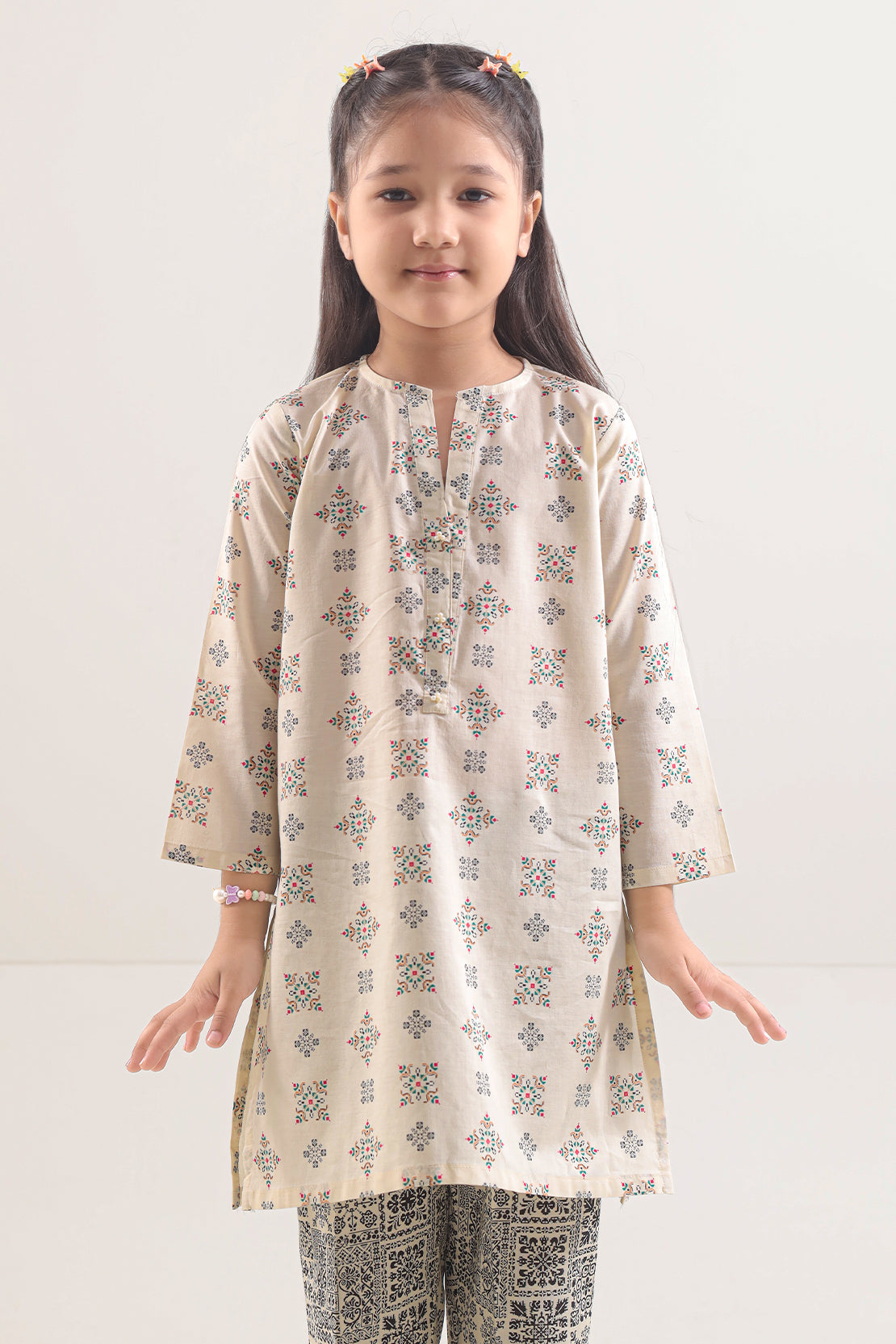 SAYA Printed Lawn Stitched 2-Piece For Kids Boasts Soft, Breathable Lawn Fabric With Vibrant Print And Fine Stitching. The Ready-Made Shirt And Trouser Deliver Comfortable Fit And Stylish Look For Daily Wear, Family Events Or Casual Outings, Blending Ease, Durability And Kid-Friendly Fashion
