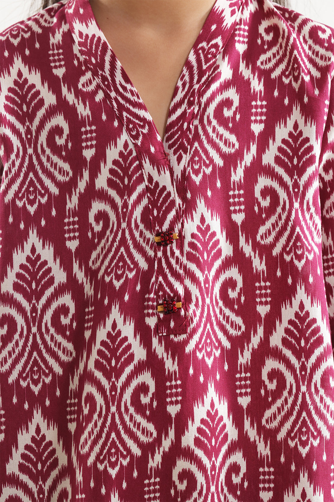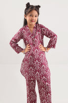 SAYA Printed Lyocell Shirt And Trouser Set For Kids In Maroon Crafted From Premium Lyocell Fabric Known For Its Silky Soft Texture And Breathable Comfort. Shirt Displays Vibrant Print Design That Adds Stylish Flair While Trouser Complements With Clean Stitching And Comfortable Silhouette. Ready-To-Wear Ensemble Offers Polished Finish Perfect For Playful Outings, Family Events Or Casual Festive Moments.
