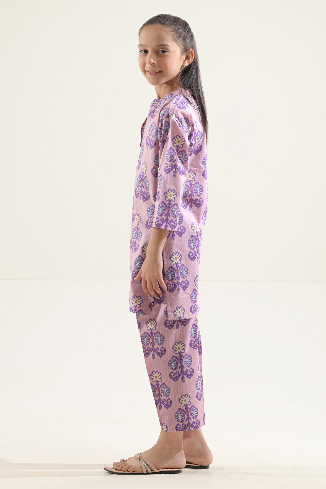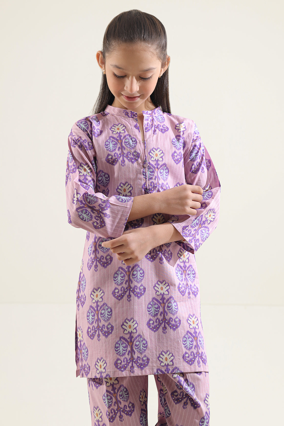 Printed Strip Lawn Stitched Two-Piece Shirt & Trouser For Kids By SAYA, Crafted From Ultra-Soft Lawn Fabric That Breathes Comfort In Warm Plays. The Shirt Features Cheerful Striped Print Over A Bright Pink Base, Paired With Matching Trouser With Elastic Waist For Easy Movement. Ready-To-Wear Cut With Precise Stitching And Neat Finish Makes It Durable And Practical. Perfect For School, Playdates Or Casual Family Outings With A Splash Of Joy.