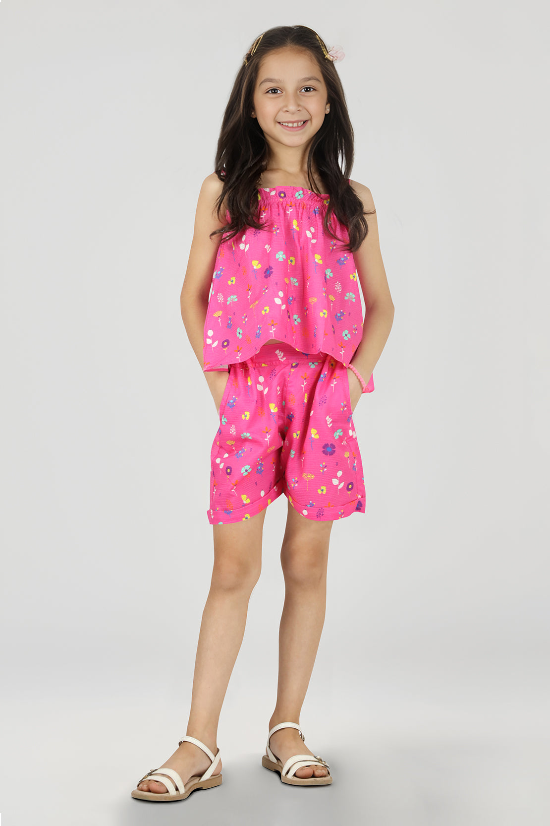 Stitched Cotton Dobby Tropical Printed Top & Shorts Co-ord Set For Kids