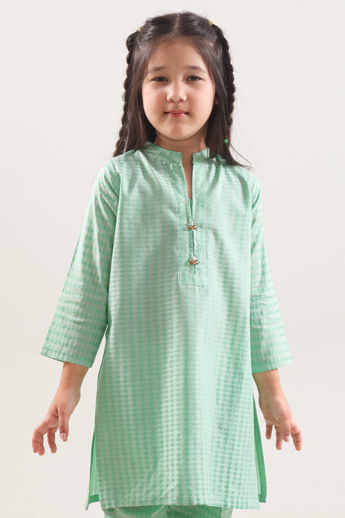 Elevate Your Child’s Style With This Exquisitely Crafted Two-Piece Set From SAYA, Woven In Cotton Jacquard Fabric That Offers Refined Appeal. The Shirt Showcases A Clean, Tailored Cut And Comfortable Design, While The Matching Trouser Maintains The Same High-Quality Fabric And Seamless Stitching For A Cohesive Look. Ideal For Festive Gatherings Or Smart Casual Occasions, This Ensemble Combines Quality, Material Excellence, And Fashion-Forward Utility To Deliver A Polished, Stylish Outfit.