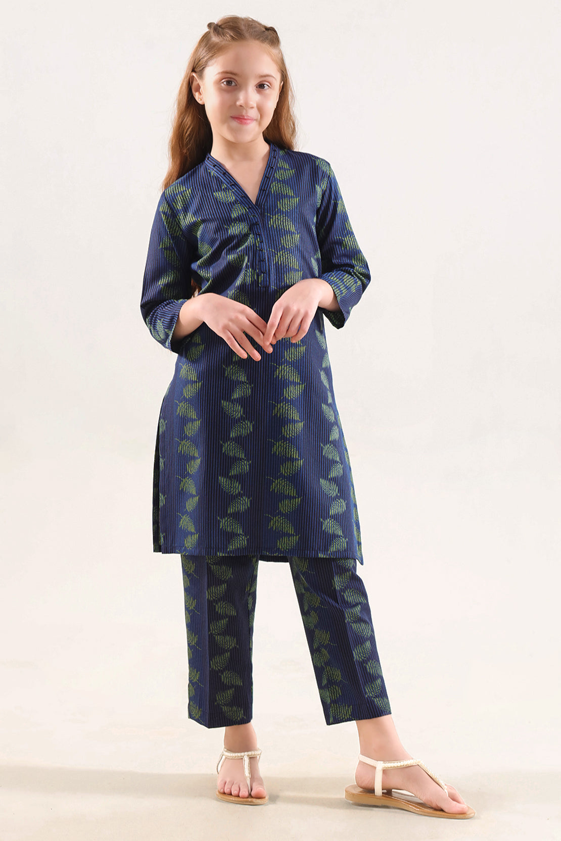 Elevate Your Child’s Everyday Look With This Stylish SAYA Cotton Jacquard 2-Piece Set, Crafted From Cotton Jacquard Fabric. The Intricate Weave Embeds A Rich, Textured Pattern Directly Into The Material Giving The Outfit A Sophisticated, Long-Lasting Finish. The Shirt Features A Classic Collar And Clean Stitching, Presenting A Polished Yet Comfortable Silhouette. The Trouser Is Designed With A Straight Cut And An Elastic Waistband For Easy Wearing And Free Movement — Ideal For Active Days Or Playtime.
