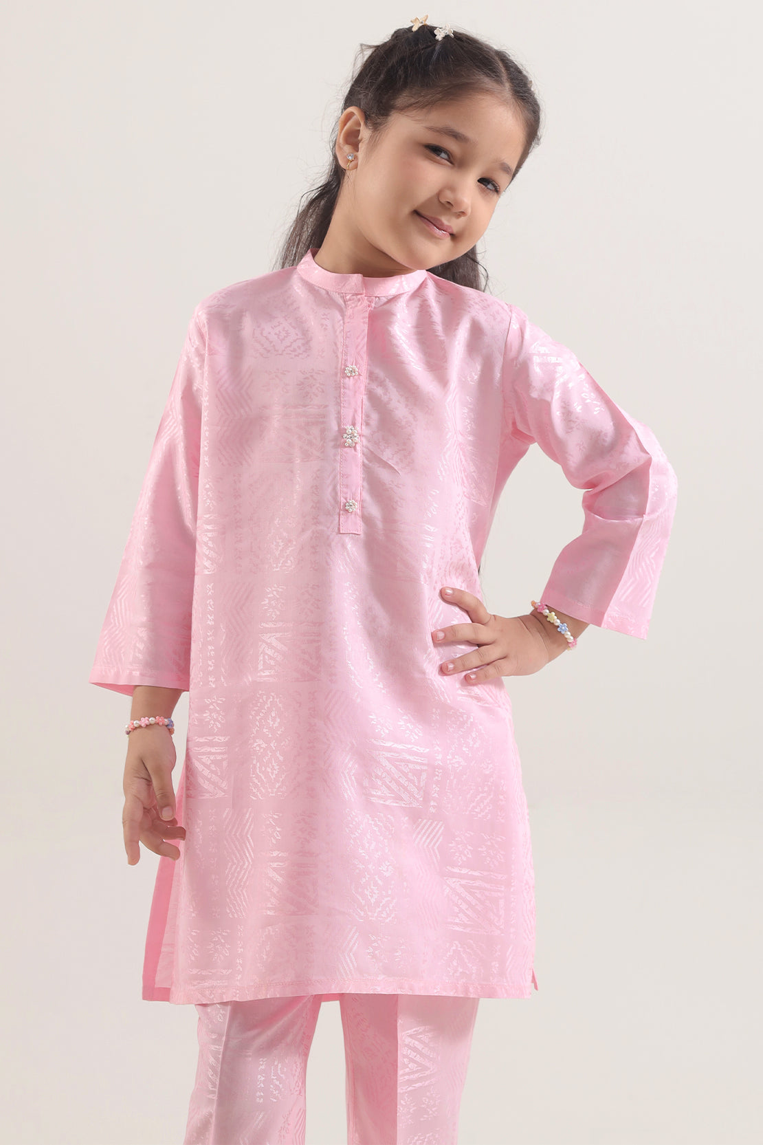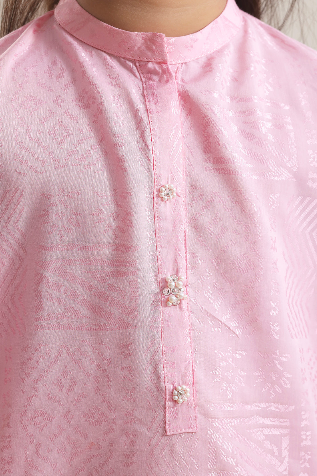 Timeless And Elegant, This SAYA Stitched Cotton Jacquard Shirt & Trouser Set For Kids Melds Comfort With Subtle Sophistication. Woven From Premium Cotton Jacquard, The Fabric Boasts A Soft Texture With A Refined Self-Pattern That Catches Light Gracefully. Expert Stitching And Clean Seams Ensure Durability And A Polished Look Even After Play. Designed As A Coordinated Ensemble, The Shirt And Trouser Blend Seamlessly Without Overstatement. Ideal For Family Gatherings, Formal Events, Or Festive Occasions, It Offers A Balance Of Practical Wearability And Understated Style For Young Minds.