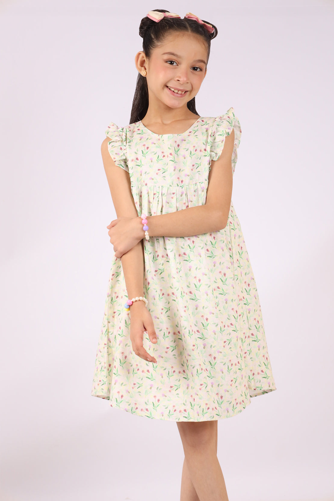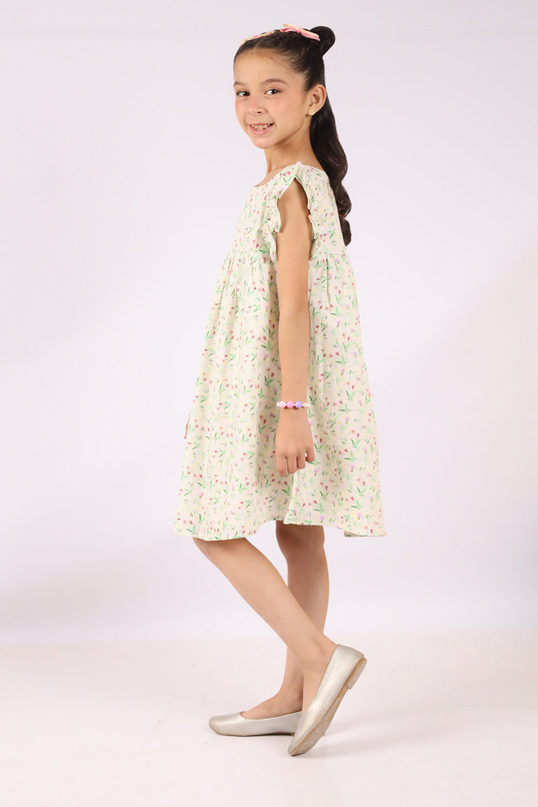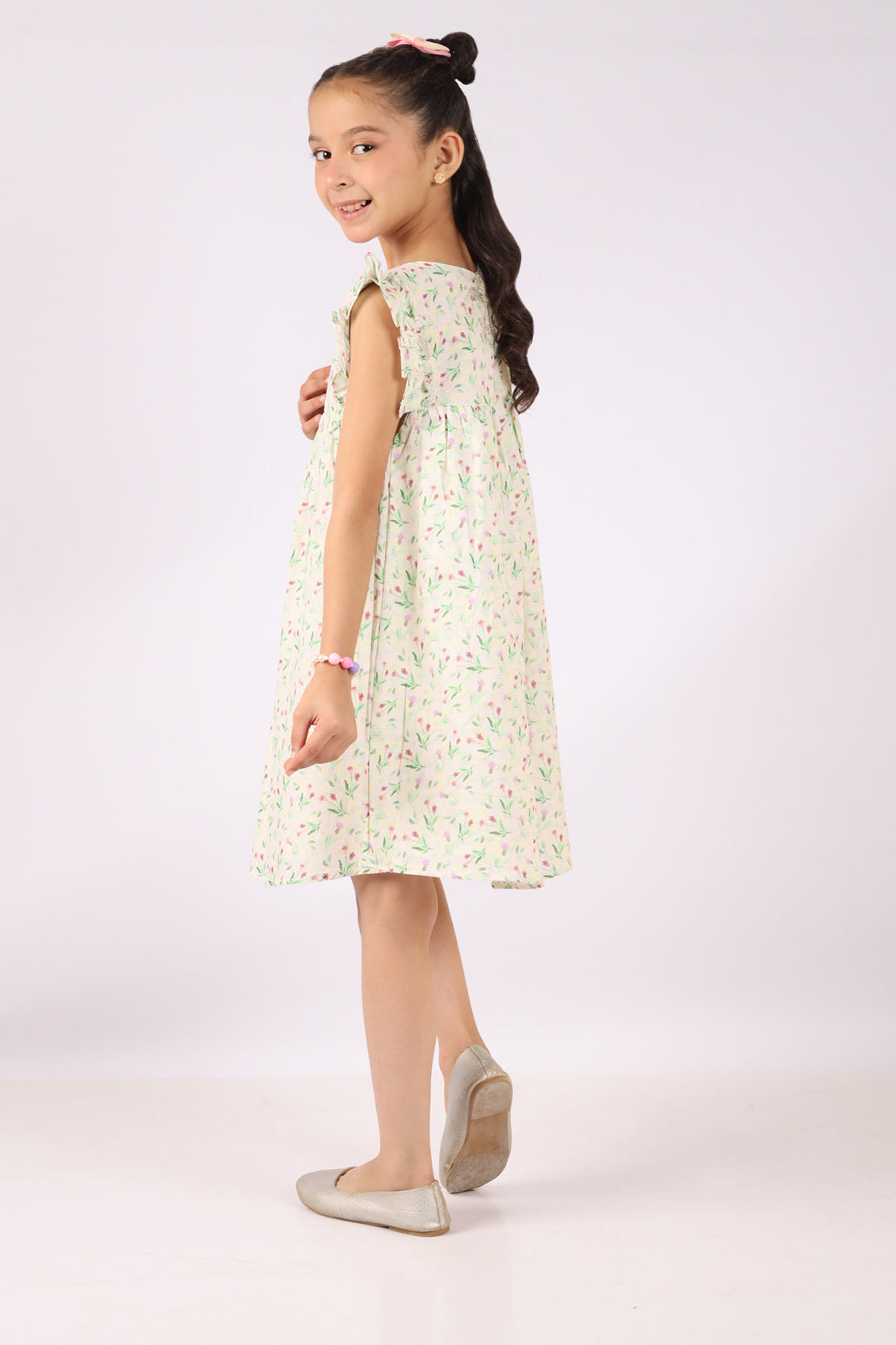 Cotton Dobby Printed Bib Collar A-line Ddress