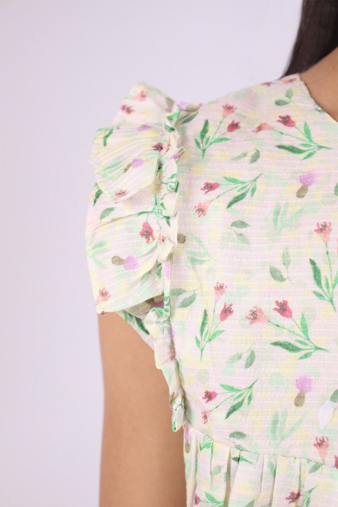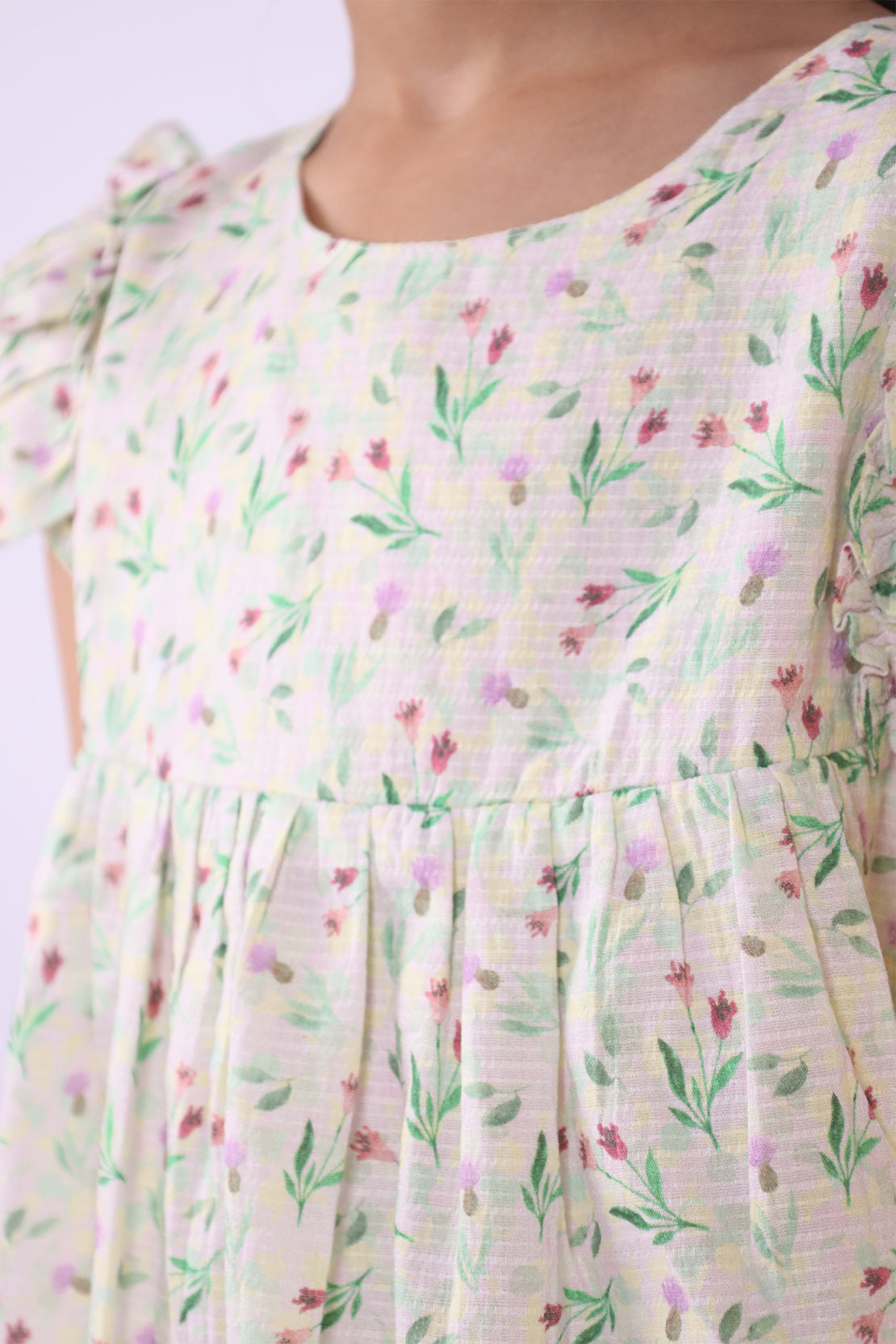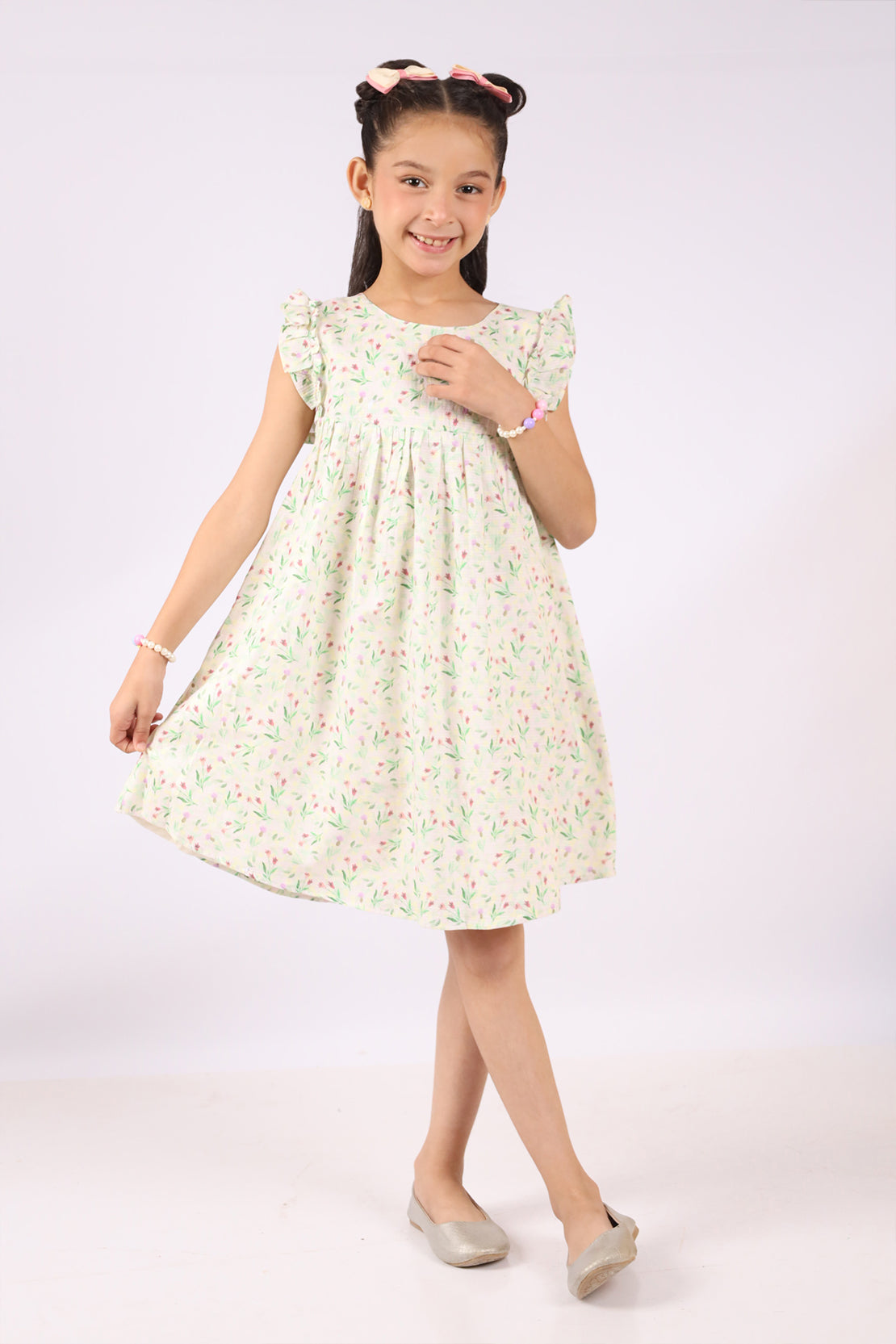 Cotton Dobby Printed Bib Collar A-line Ddress