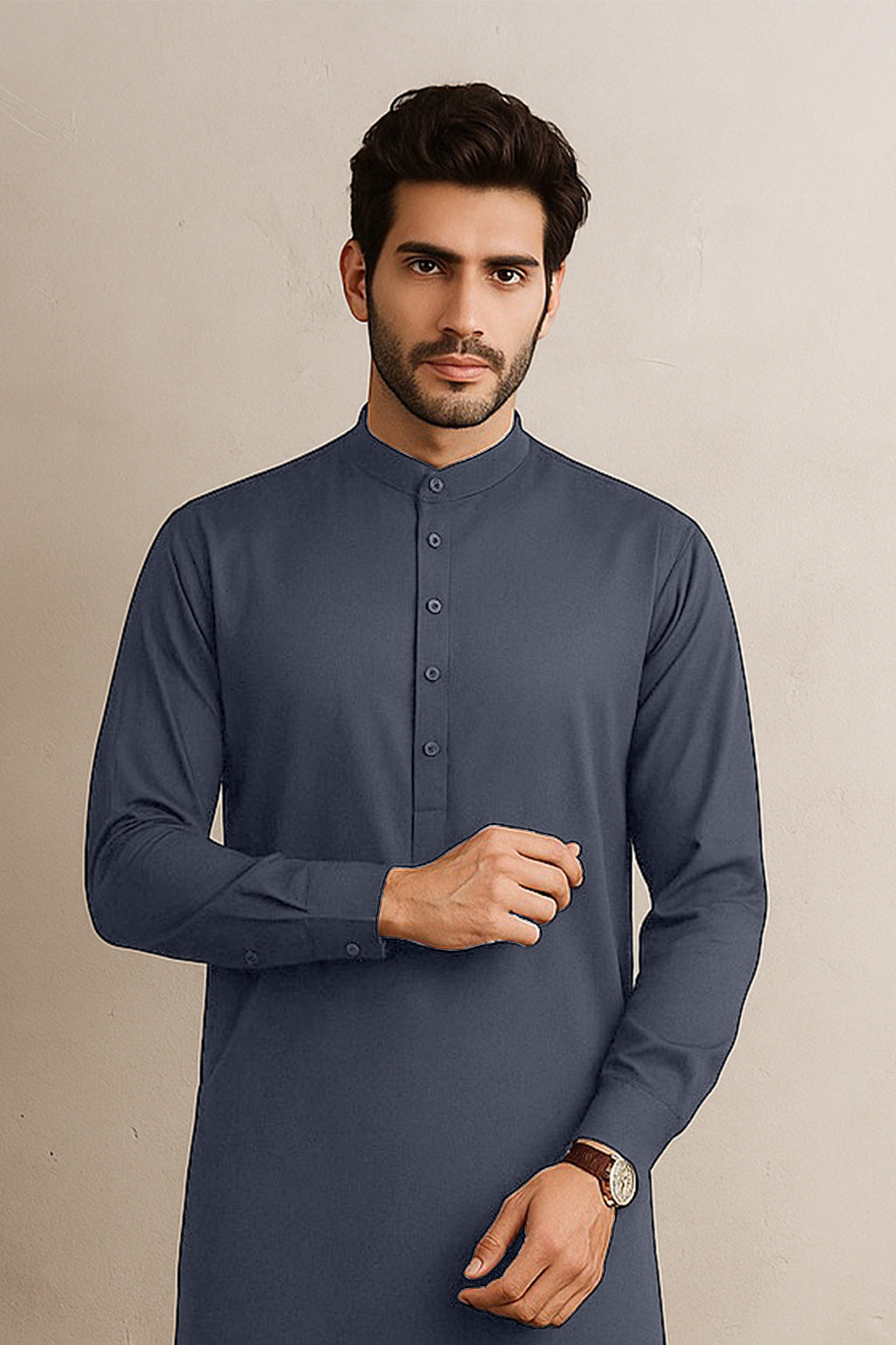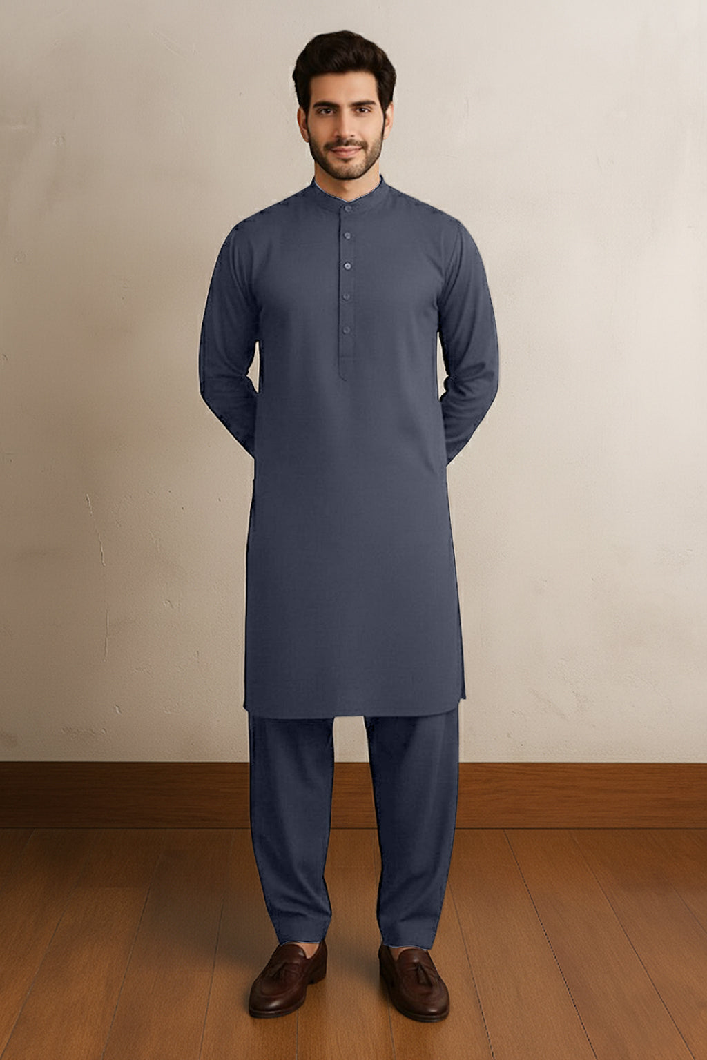 Unstitched Premium Blended Wear Suit By SAYA Crafted From A Refined Fabric Blend That Offers Softness, Structure And A Polished Drape. The Greyish Blue Hue Strikes The Perfect Balance Between Cool Tones And Elegance — Ideal For Festive Occasions, Formal Settings Or Signature Daywear. This 2-Piece Set (Shirt + Trouser Fabric) Grants You Full Freedom To Customize Style, Cutting, And Embellishments. A Sophisticated Foundation That Elevates Any Tailored Ensemble With Subtle Charm.
