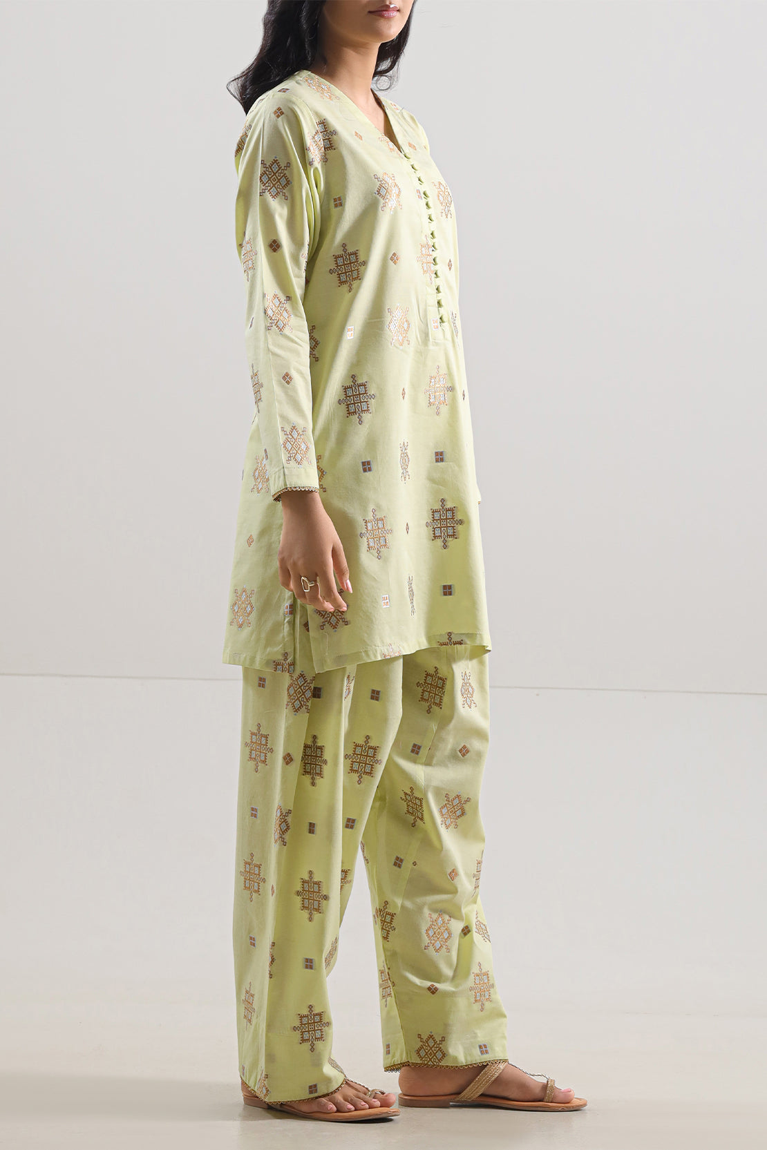 Elevate Your Ready-To-Wear Collection With This Exquisitely Crafted Cotton Jacquard 2-Piece From SAYA. Rendered In Vibrant Lemon Yellow, The Premium Cotton Jacquard Fabric Delivers A Subtle Woven Texture That Harmonizes Breathable Comfort With Refined Structure. Designed As A Coordinated Ensemble, The Shirt And Trouser Pair Effortless Elegance With Versatile Wear—Perfect For Polished Daywear Or Subtle Semi-Formal Styling.