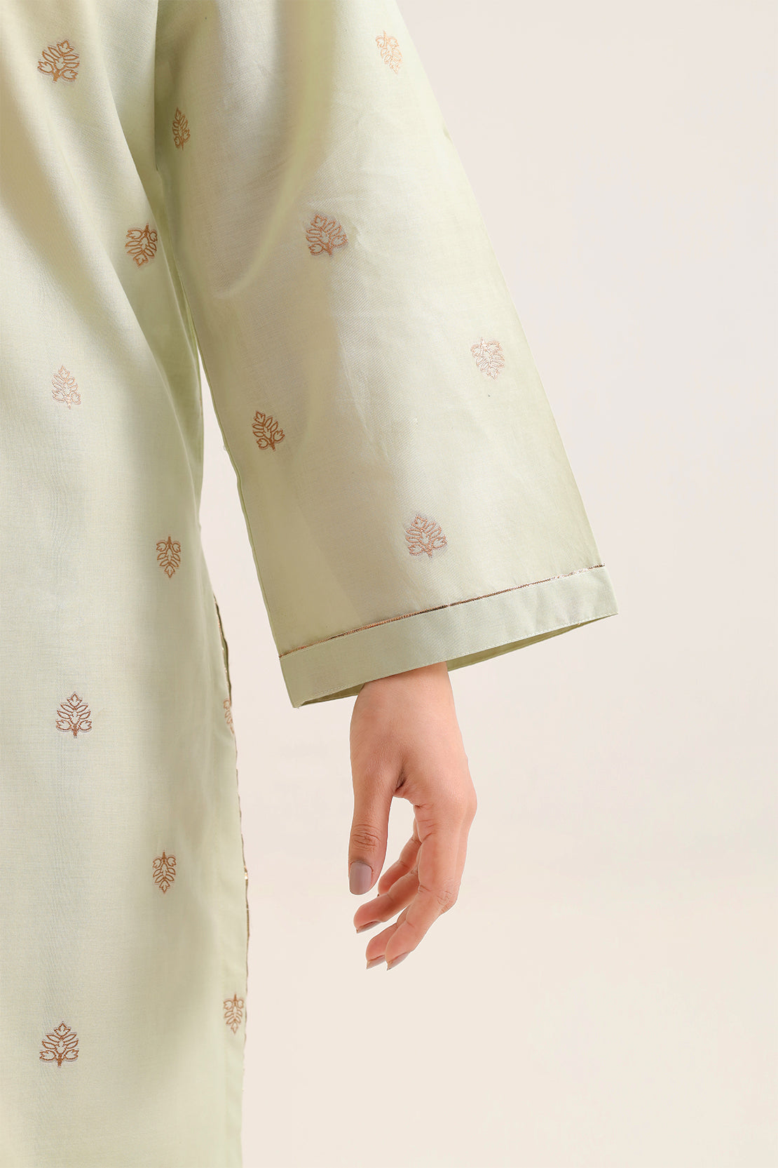 SAYA Cotton Jacquard Stitched 2-Piece Shirt & Trouser Is Woven From Premium Cotton Jacquard Fabric With A Rich, Self-Woven Texture That Adds Depth And Refined Visual Interest. The Ready-To-Wear Shirt Offers A Polished, Structured Fit While The Trouser Delivers Breathable Comfort And Smooth Wear — Ideal For Smart Casual Outfits, Office Days Or Elegant Everyday Style.