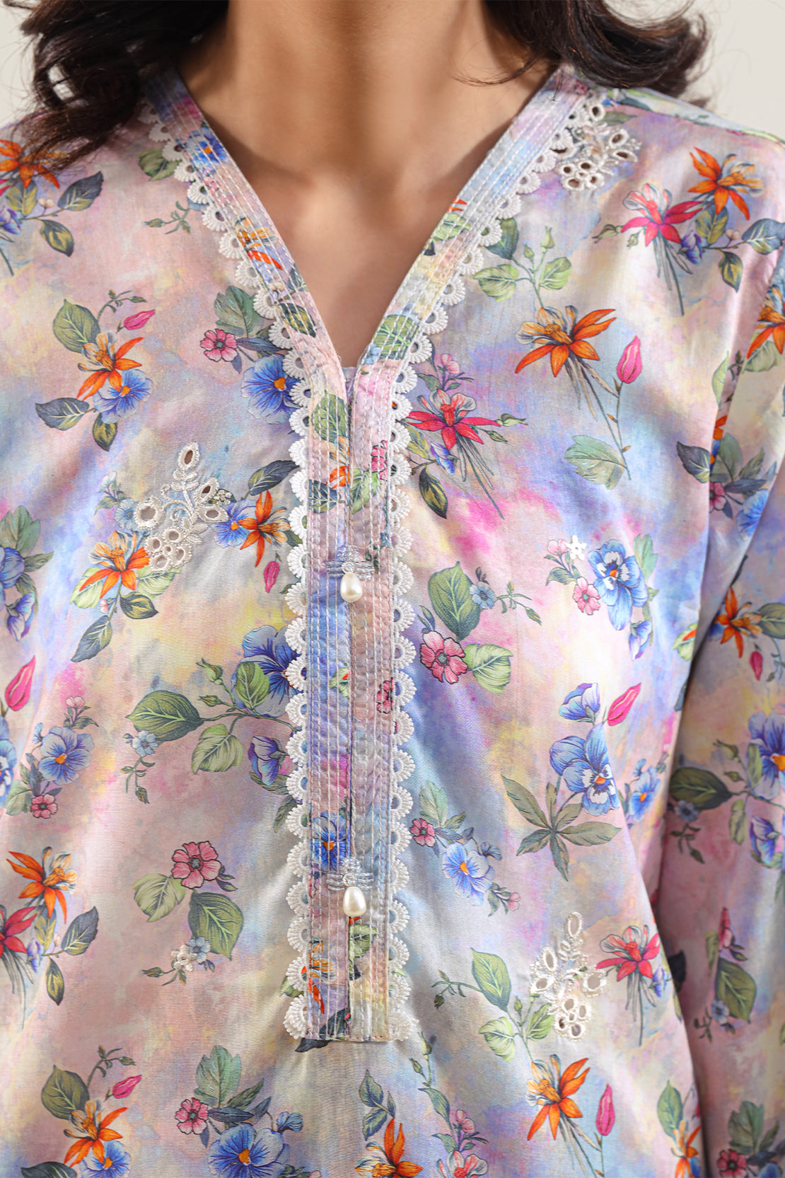 Elevate Your Summer Wardrobe With The SAYA Printed Embroidered Arabic Premium Lawn 2-Piece Set In Blue. Crafted From Lightweight Premium Arabic Lawn Fabric Known For Its Breathability And Soft Touch, The Ready-To-Wear Shirt Features Elegant Print And Refined Embroidery Detail On A Rich Blue Base. The Coordinated Trouser Completes The Ensemble With A Seamless, Polished Fit. The Deep Blue Tone Adds Depth And Versatility—Perfect For Daytime Gatherings, Evening Casuals, Or Festive Events. This Set Blends Comfort, Style, And Effortless Elegance For A Modern Necessary.