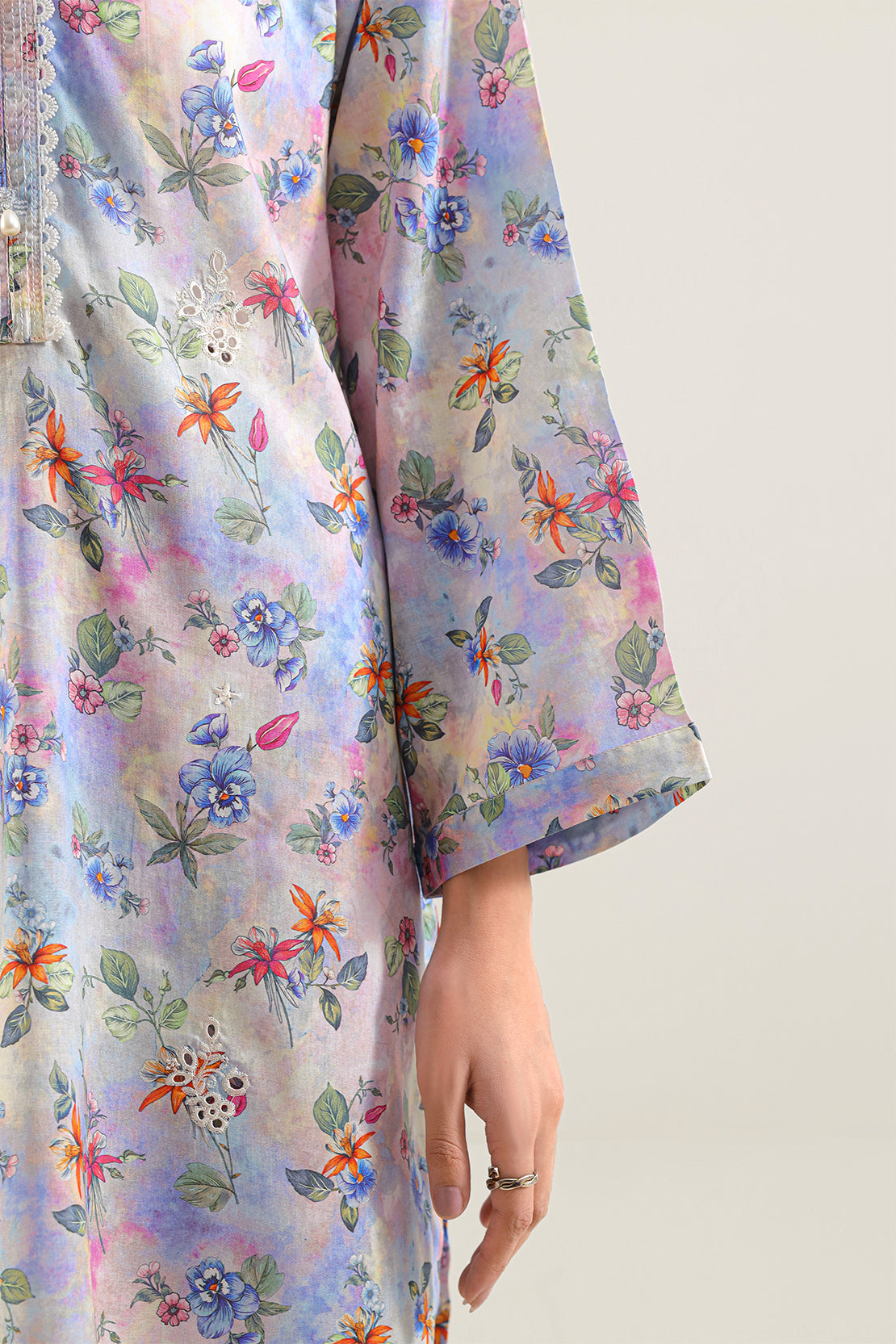 Ready To Wear Printed Embroidered Arabic Lawn Stitched Shirt.