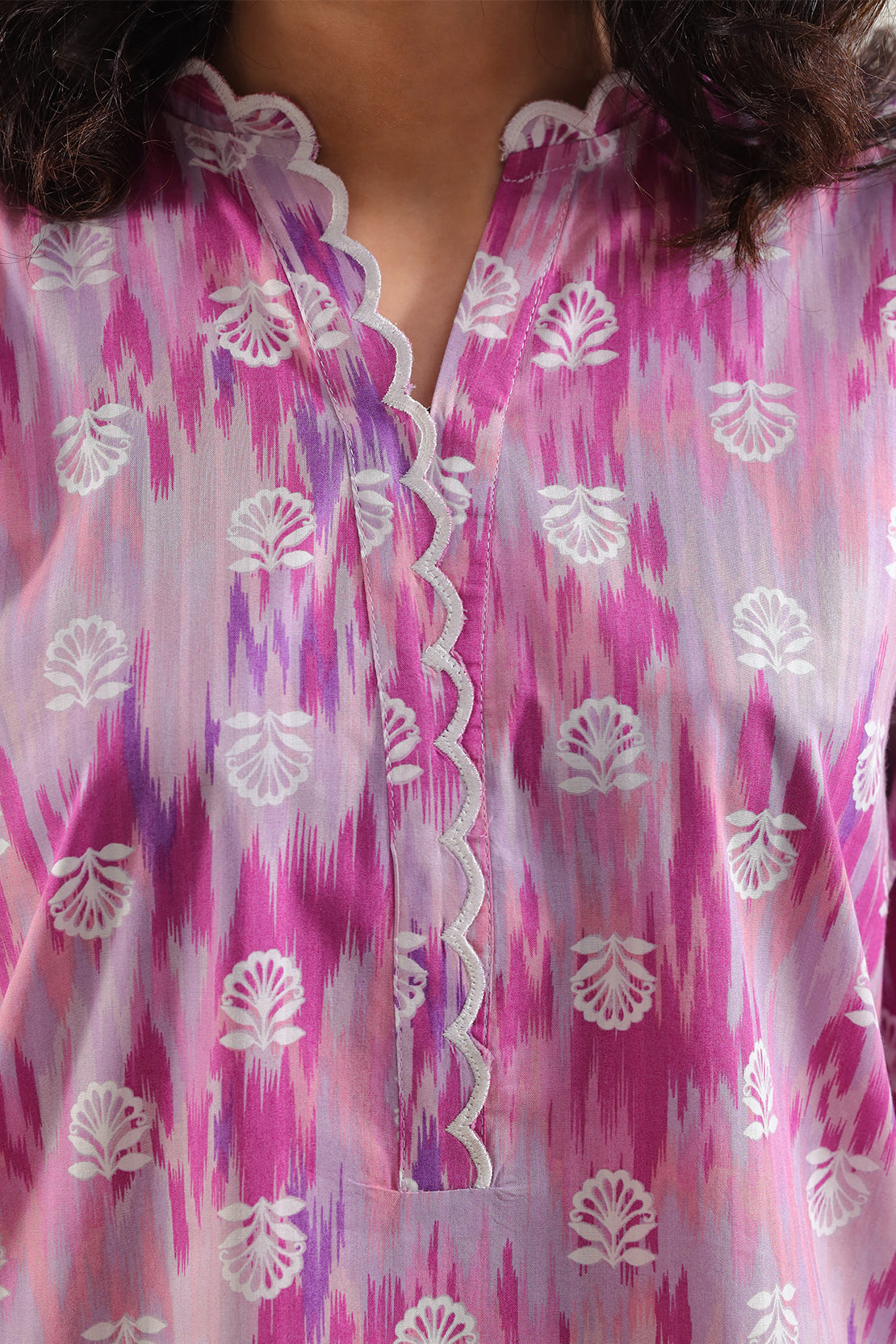 The stitched Two-piece set from SAYA showcases a refined Pink tone, crafted in lightweight strip-lawn fabric for breathable ease and subtle movement. The shirt panel features elegant vertical stripes enhanced by delicate embroidery on the neckline and sleeves, while the matching trouser fabric offers structure and tailoring freedom. Completing the look is a coordinating dupatta that adds graceful flow. Ideal for daytime gatherings, casual festive events or smart warm-weather wear, this set combines comfort, versatility and understated sophistication.