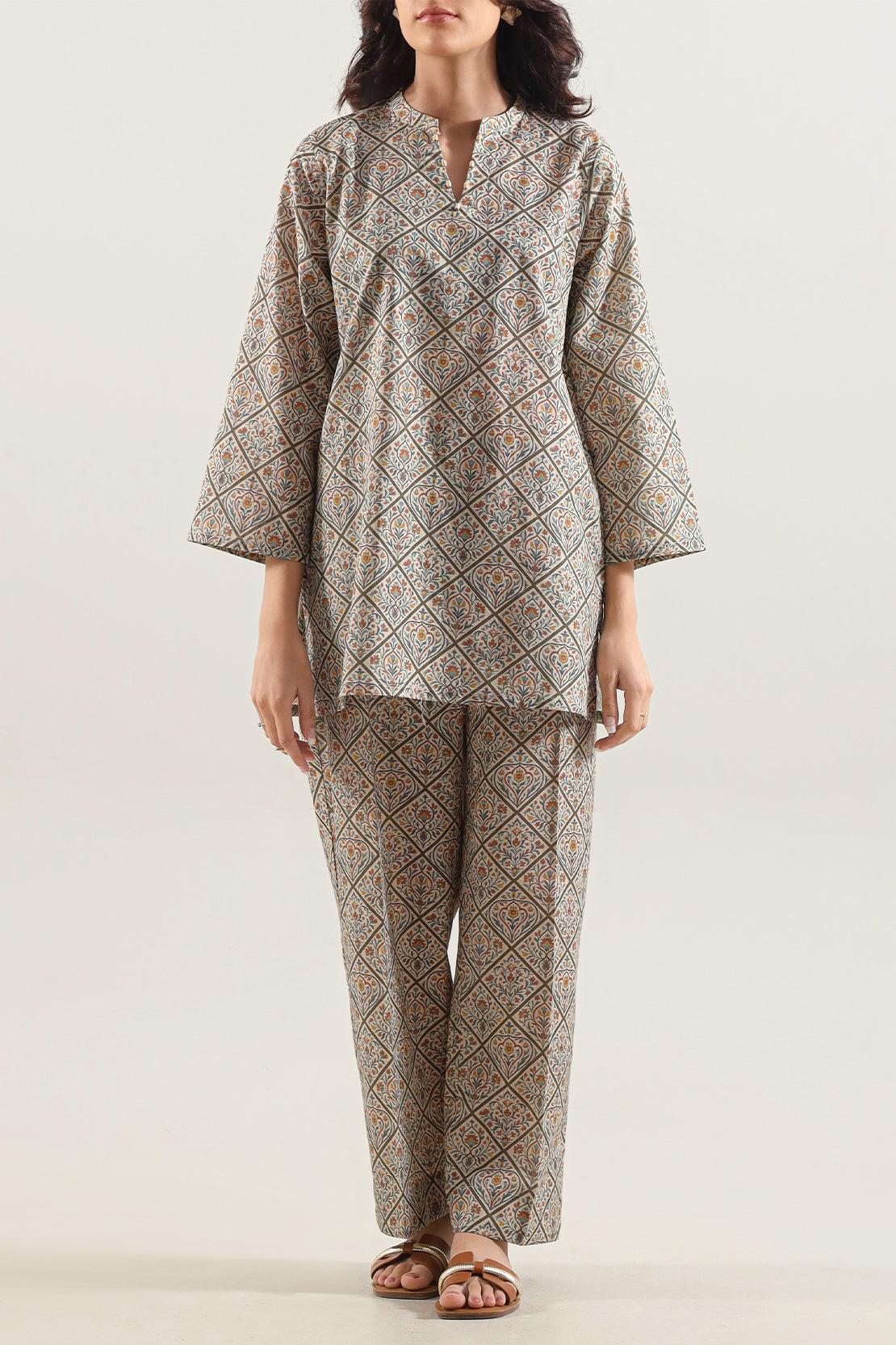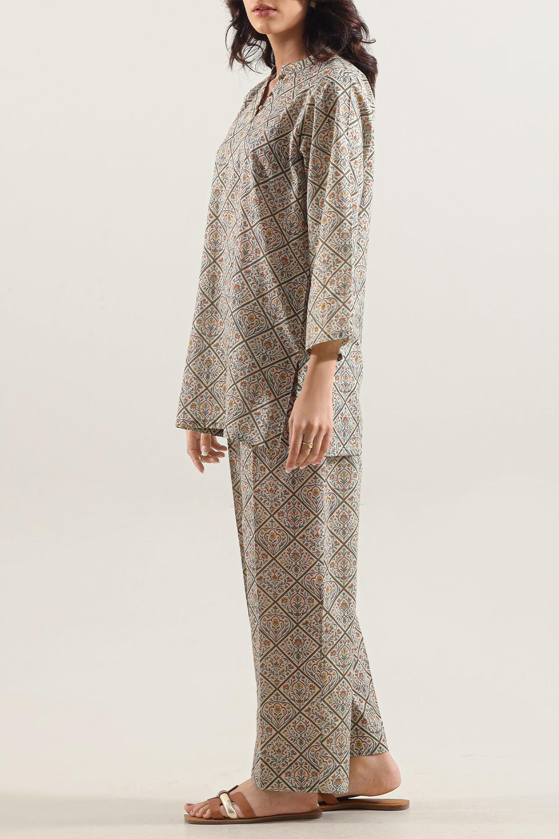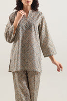 Exemplify Modern Grace With The SAYA Printed Self-Strip Lawn Stitched Two-Piece Set. Meticulously Tailored From Premium Lawn Fabric, Celebrated For Its Delicate Hand-Feel And Breathtaking Comfort, This Ensemble Is Ideal For Sophisticated Daytime Engagements. It Features A Subtle Self-Strip Print, Weaving A Sophisticated Linear Pattern That Creates A Visually Engaging Yet Understated Aesthetic. Designed For A Flawless, Ready-To-Wear Fit, This Coordinated Shirt And Trouser Set Is An Ideal Choice For Garden Parties, Luncheons, And Casual Social Gatherings, Seamlessly Blending Polished Elegance With Effortless Wearability.