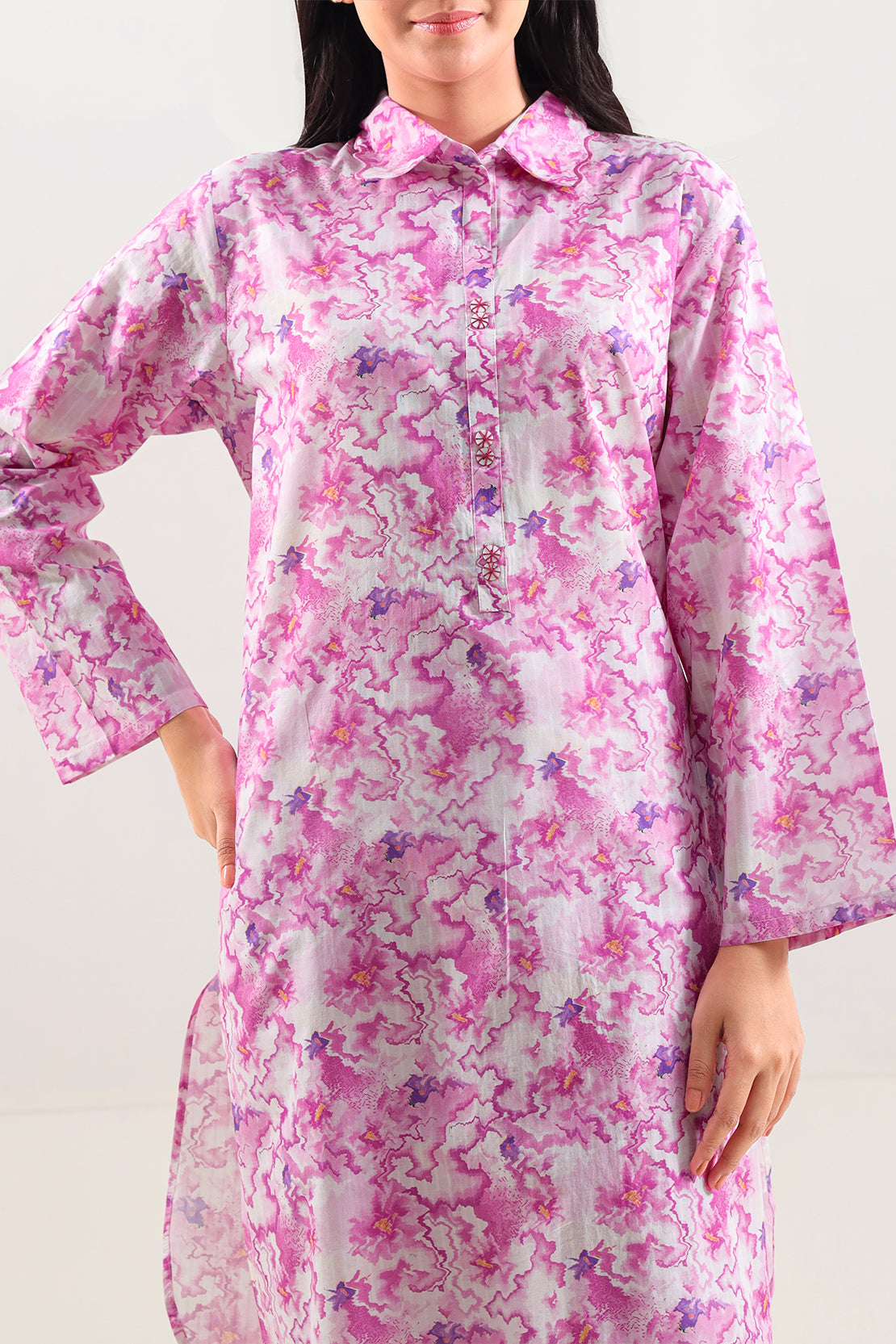 SAYA Printed Self-Stripe Lawn 2-Piece Is Tailored From Soft, Feather-Light Lawn Known For Its Breathability And Gentle Drape. The Shirt Features A Sophisticated Self-Stripe Print With A Crisp, Ready-To-Wear Cut, While The Trouser Provides Freedom Of Movement And Lightweight Comfort — Ideal For Warm-Weather Days, Casual Outings Or Smart-Casual Summer Looks.