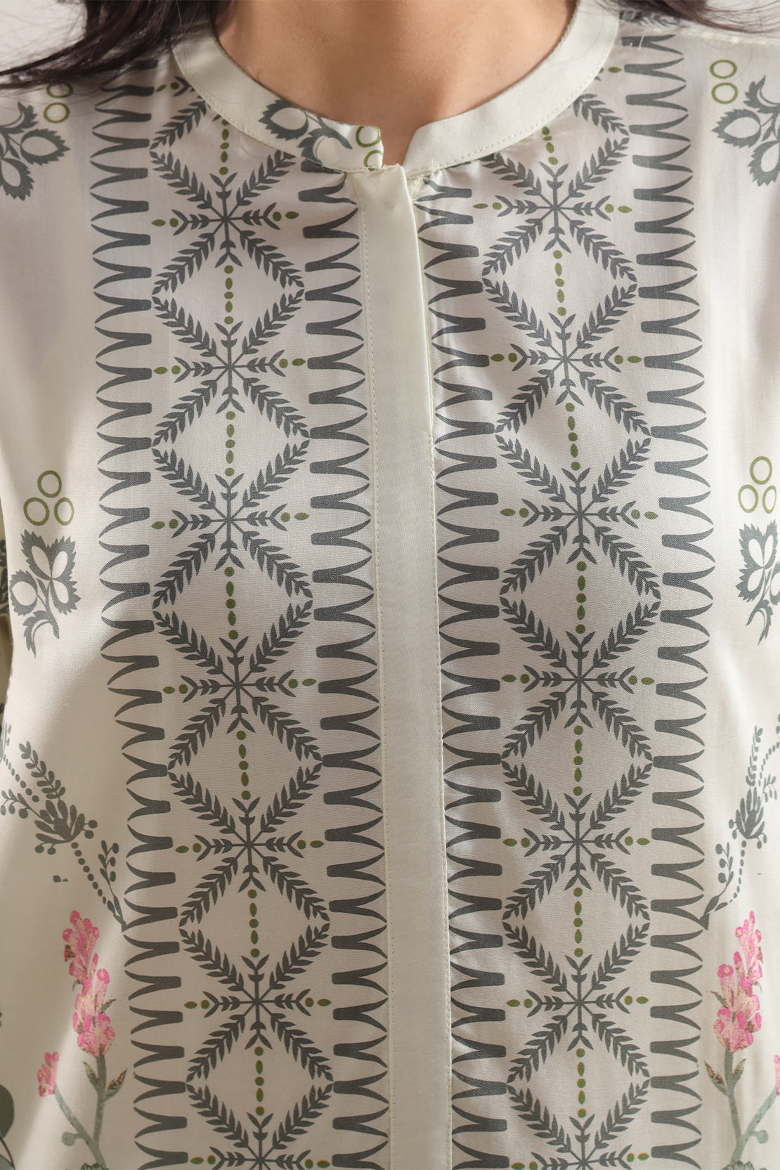 The SAYA Printed Silk-Touch Stitched 2-Piece (Shirt & Trouser) features a sleek Ivory tone, rendered in luxuriously soft lyocell with a refined silk-touch finish. The shirt boasts an artfully printed design with a structured collar and tailored cut, offering ready-to-wear ease with elevated appeal. Paired trouser delivers complementary styling, clean lines and graceful drape. Ideal for evening events, formal gatherings or stylish day-to-night transitions—this set brings sophistication, comfort and polish to your wardrobe.