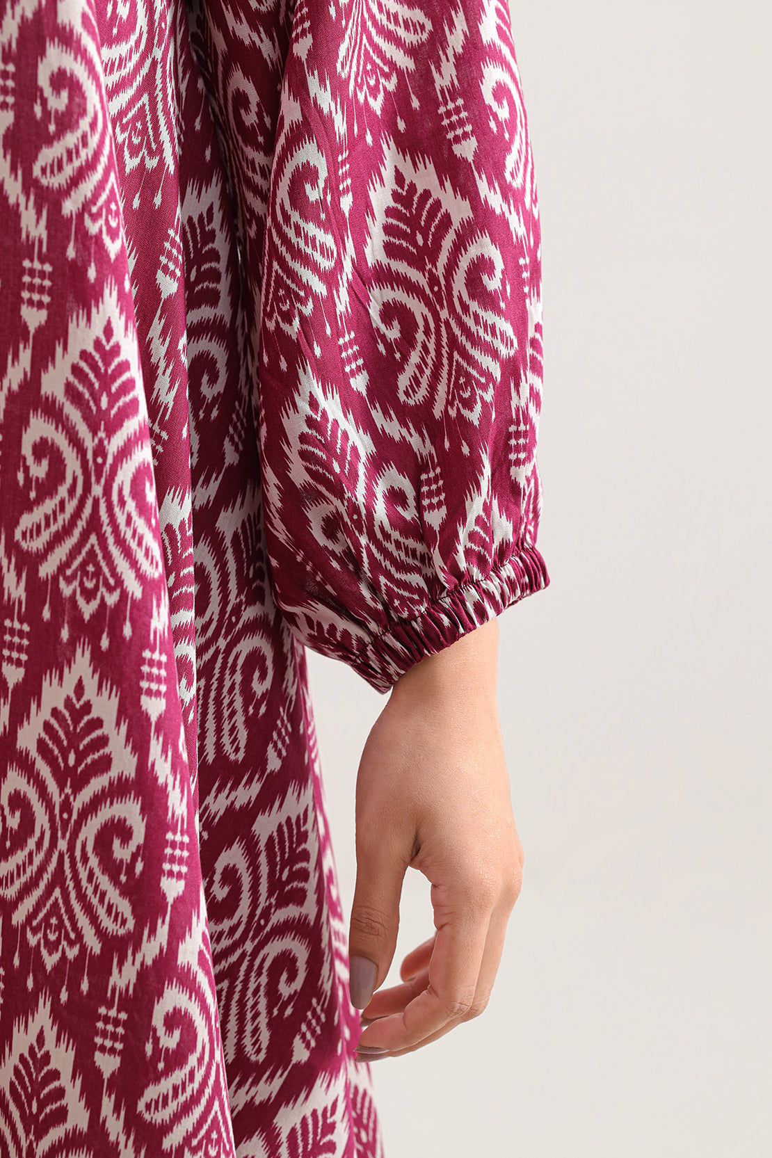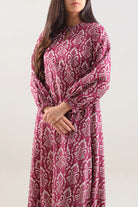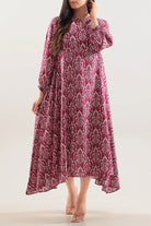 Graceful And Contemporary, This SAYA Printed Silk-Touch Stitched Dress In Deep Maroon Radiates Modern Elegance. The Silk-Touch Fabric Offers A Naturally Soft, Breathable Feel With A Luxurious Silky Sheen. Its Lightweight Drape Moves Gracefully While Maintaining Exceptional Comfort. The Printed Motifs Enhance The Rich Maroon Base, Adding Depth And Subtle Charm Without Overpowering. With Immaculate Stitching And A Polished Finish, This Dress Is Ideal For Festive Gatherings, Evening Soirées, Or Refined Day Events — A Perfect Balance Of Style, Comfort, And Sophistication.