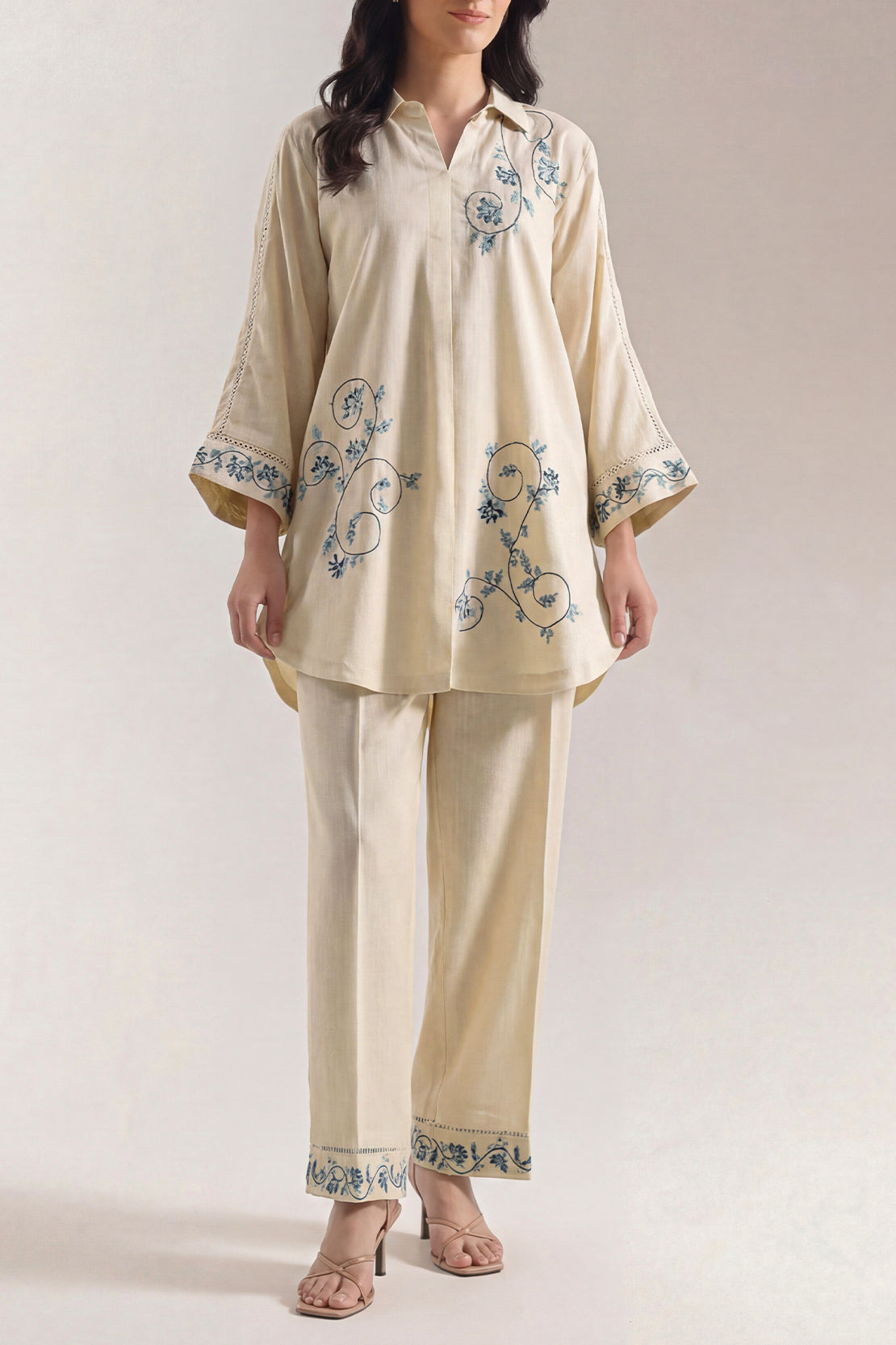 SAYA's Solid Embroidered Cross-Hatch Stitched Two-Piece Set Features A Distinctive Textured Weave Adorned With Delicate Hand Embroidery. Expertly Tailored For A Ready-To-Wear Fit, This Coordinated Ensemble Offers A Structured Drape And Architectural Sophistication. Perfect For Formal Weddings, Distinguished Galas, And Special Occasions, It Embodies A Perfect Synthesis Of Textural Detail, Artisanal Craftsmanship, And Enduring, Elegant Style.
