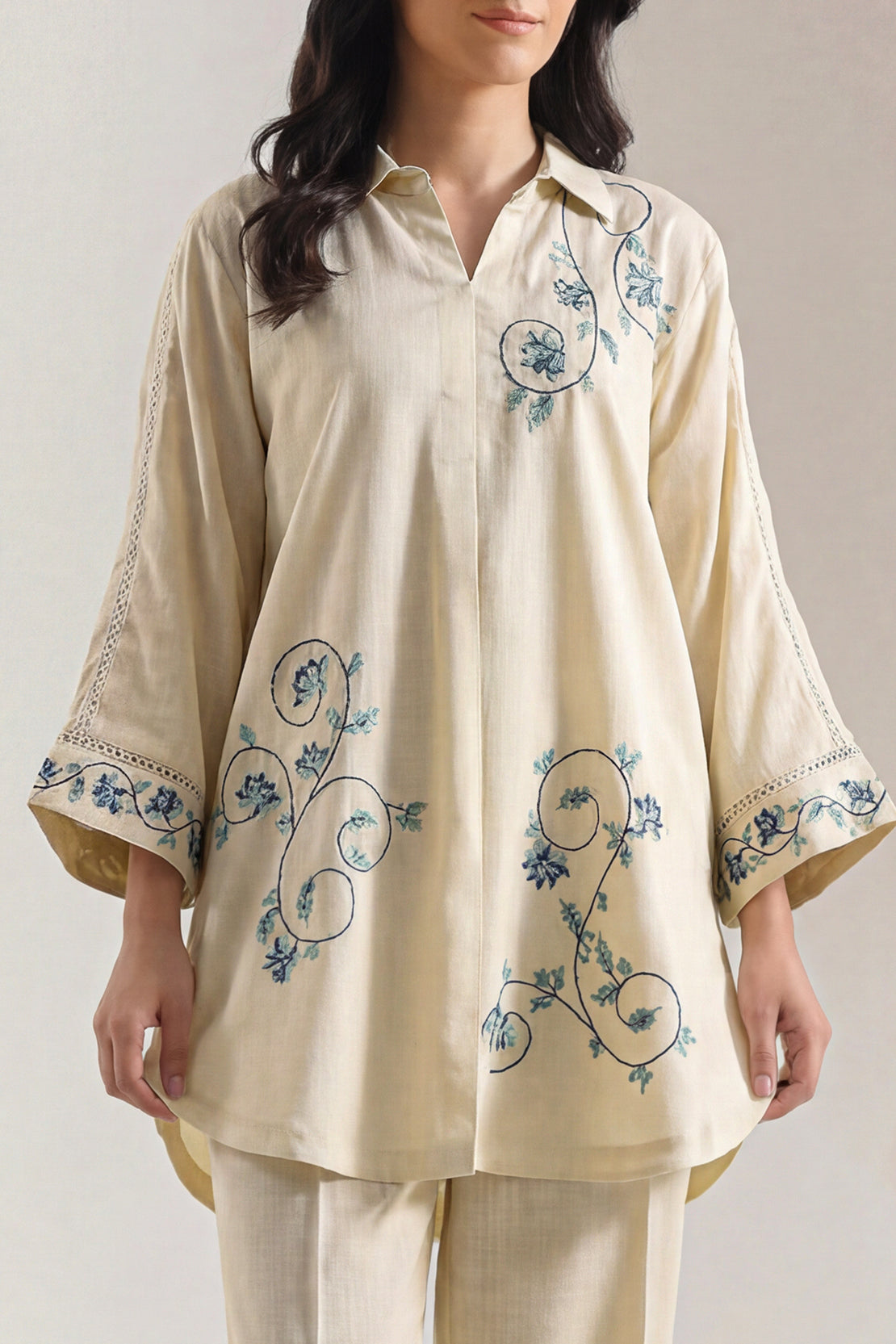 Ready To Wear Embroidered Solid Cross Hatch Stitched Shirt.