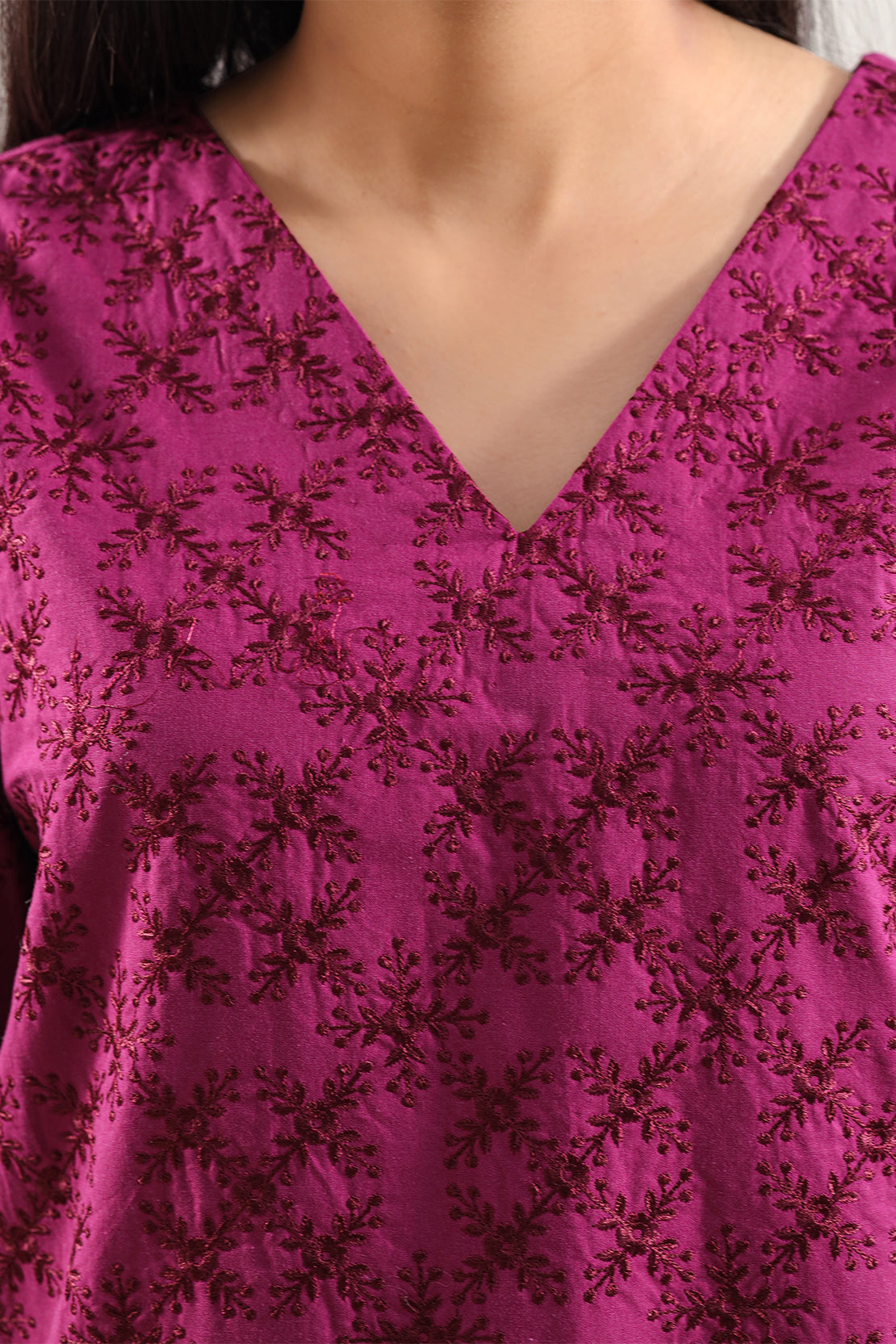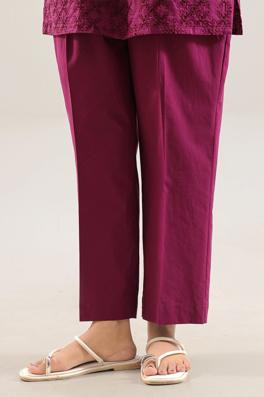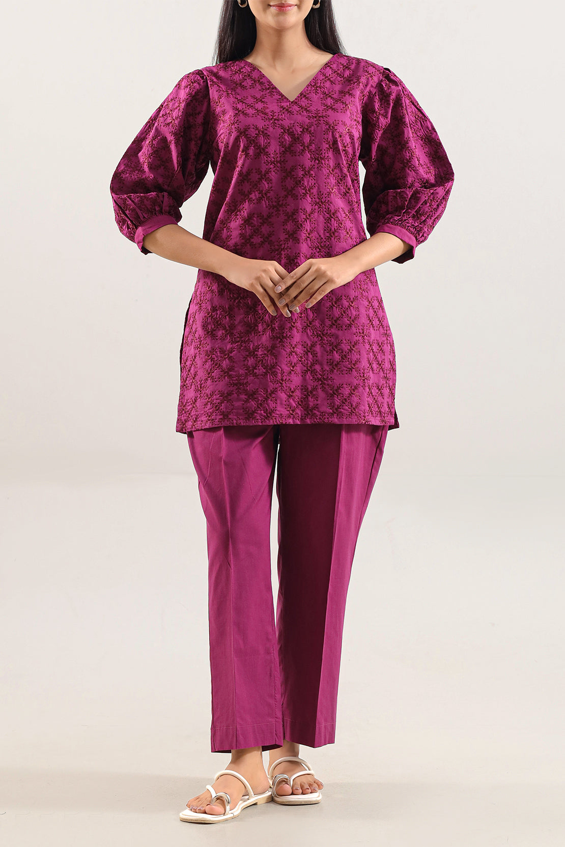 Upgrade Your Wardrobe With SAYA’s Solid Embroidered Poplin 2-Piece Set In Burgundy. Crafted From High-Quality Poplin Fabric That Merges Clean Structure With Breathable Comfort, The Shirt Features Elegant Embroidery That Elevates The Design While Remaining Minimalist. Paired With A Coordinated Trouser For A Complete Styled Ensemble, The Deep Burgundy Tone Brings Rich Sophistication—Ideal For Smart Casual Outings, Day-to-Evening Wear, Or Polished Everyday Looks.