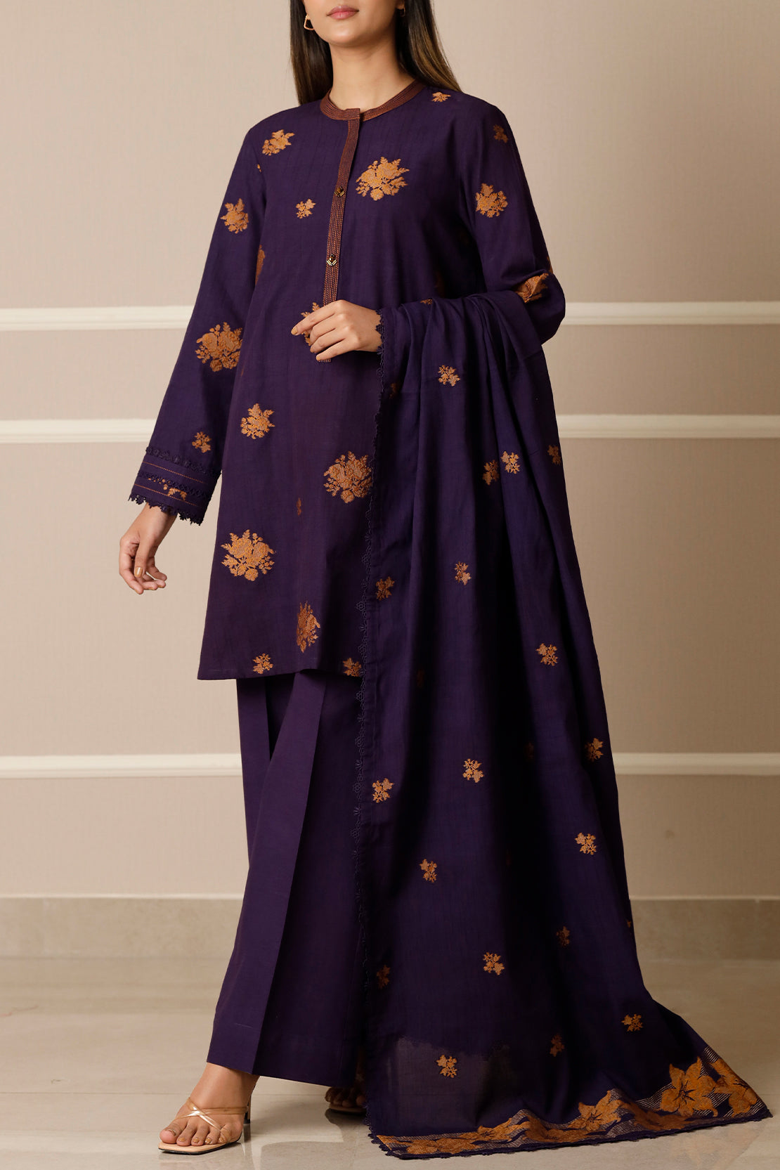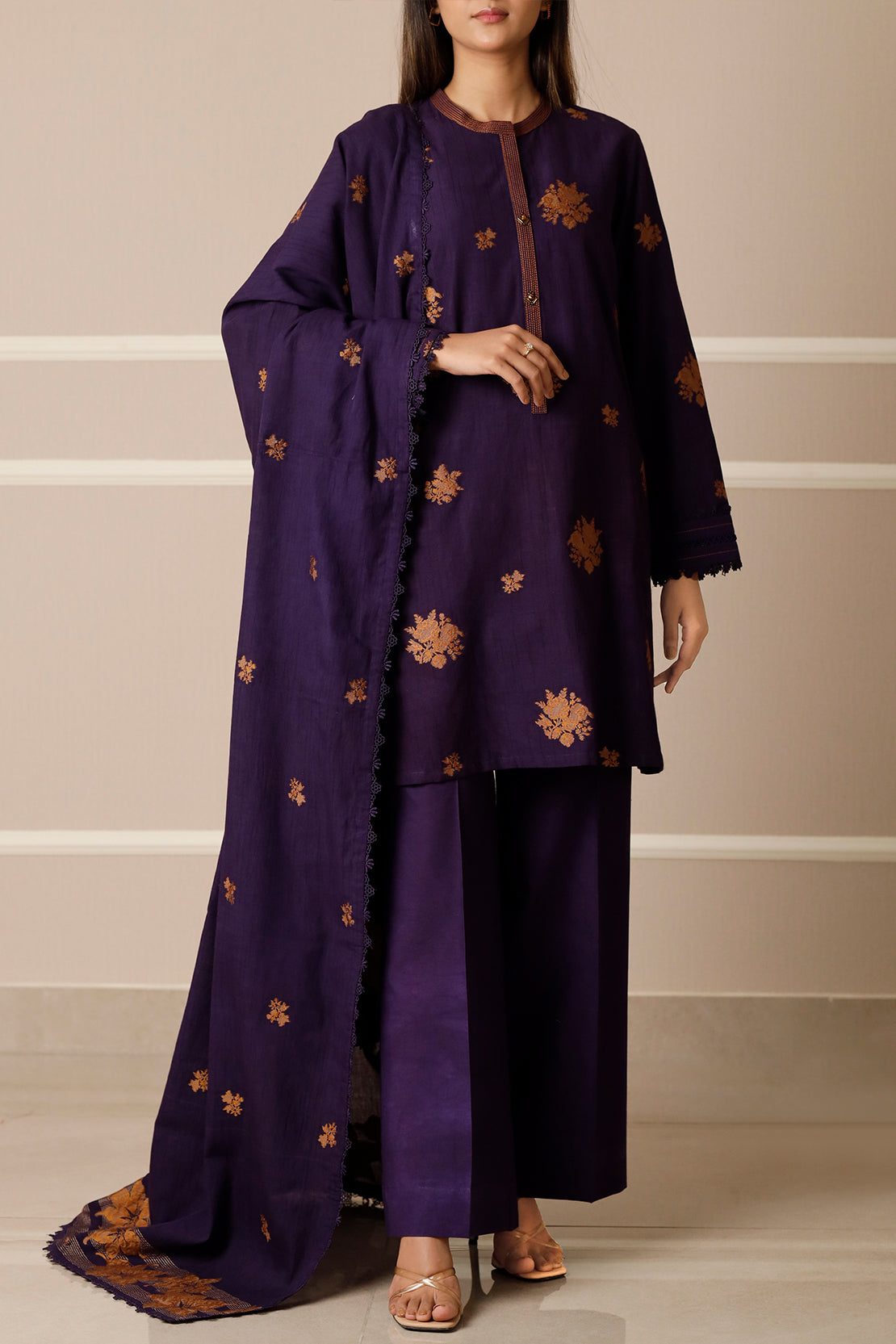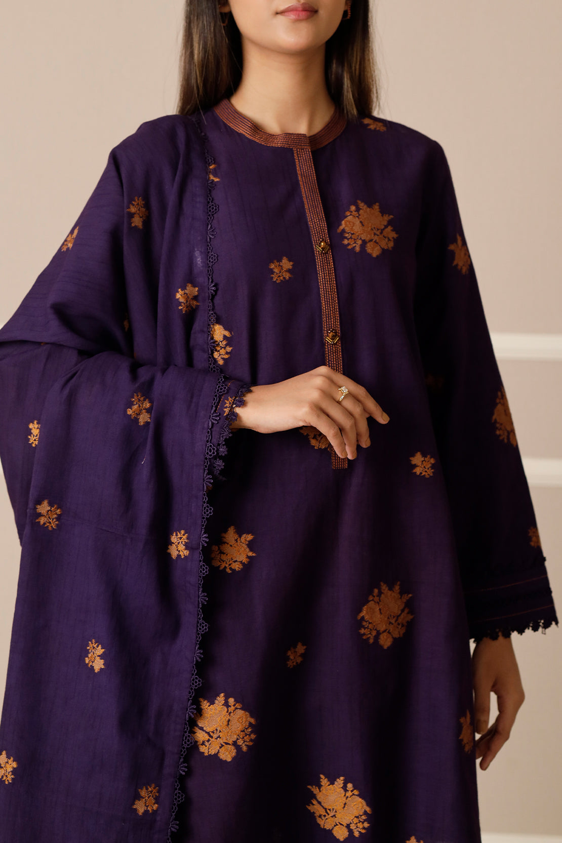 Embrace Tailoring Freedom With The SAYA Unstitched Jacquard Cotton 3-Piece Set, Woven From Rich Jacquard Cotton That Blends Texture, Breathability, And A Subtle Sheen. The Set Includes Yardage For Shirt, Trouser, And Dupatta — All In The Same Weave, Allowing A Seamless Cohesive Look. The Intricate Jacquard Pattern Acts As An Elegant Canvas, Ready For Embellishment Or Clean Minimal Styling. Perfect For Weddings, Festive Events, Or Elegant Day Soirees, This Ensemble Lets You Bring Your Signature Design Vision To Life Without Compromise.