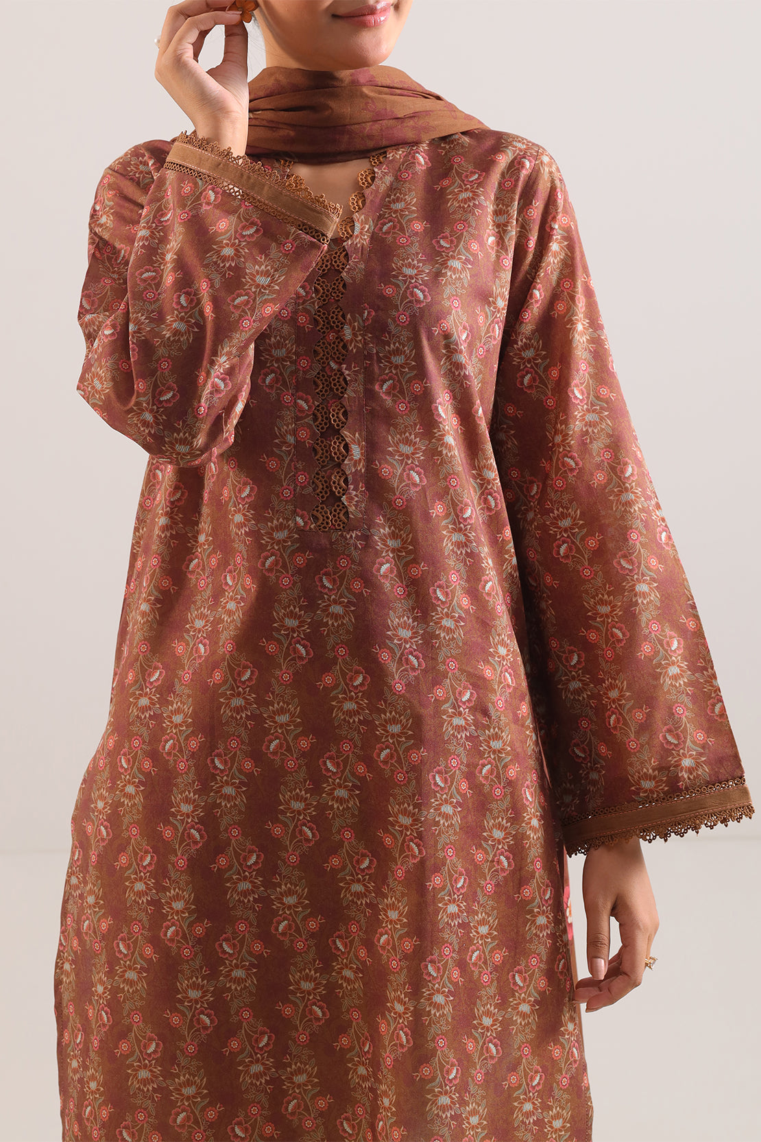 Elevate Your Custom Creations With This Exquisitely Crafted Unstitched Printed Lawn 3-Piece From SAYA. Rendered In Rich Brown, The Premium Lawn Fabric Offers Feather-Light Breathability And Effortless Comfort—Perfect For Personalized Tailoring. The Harmoniously Printed Shirt, Coordinated Dupatta, And Complementary Dyed Cambric Trouser Unite Refined Simplicity With Contemporary Grace, Making This Ensemble Ideal For Bespoke Styling In Everyday Or Festive Wardrobes.
