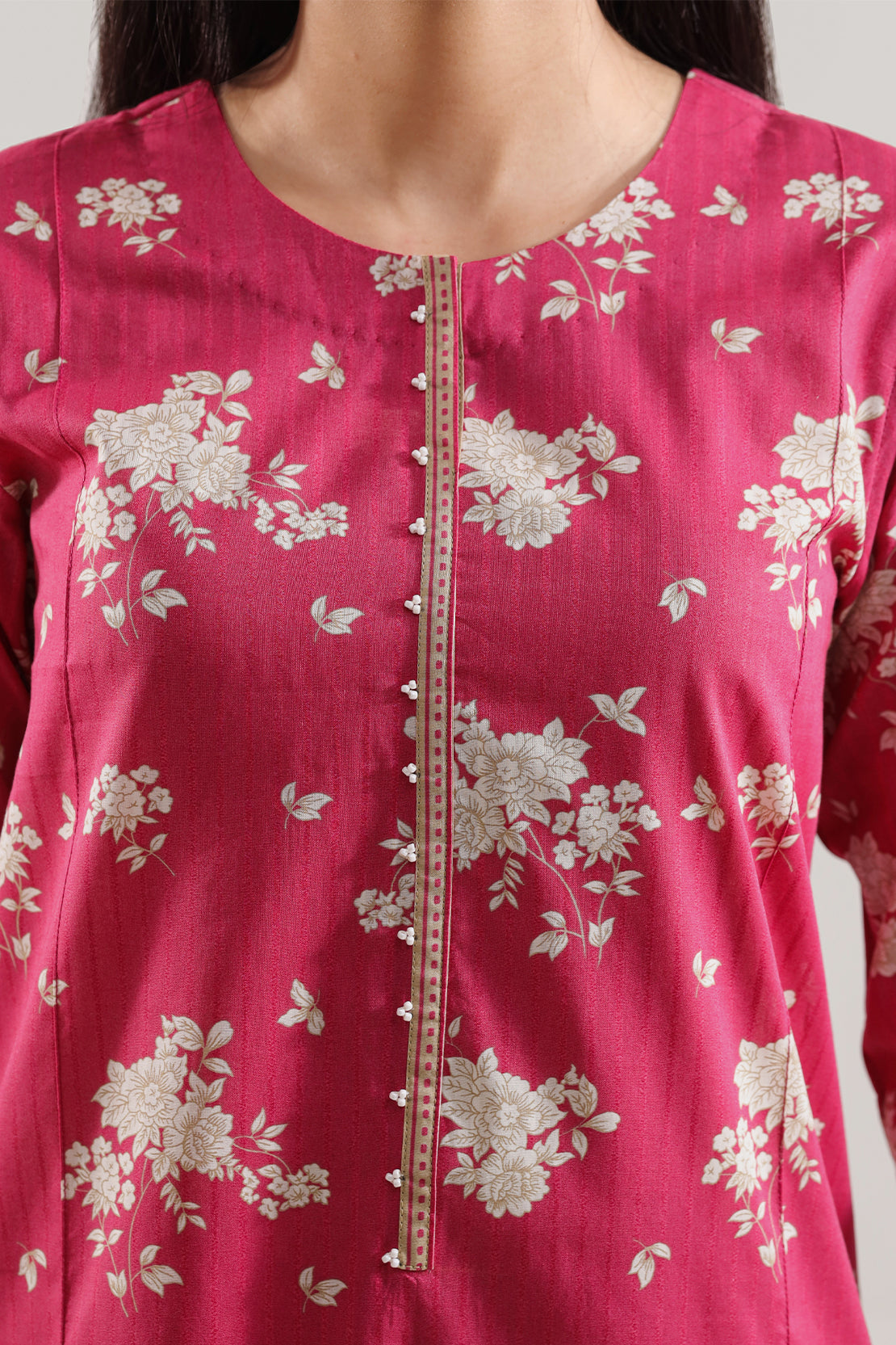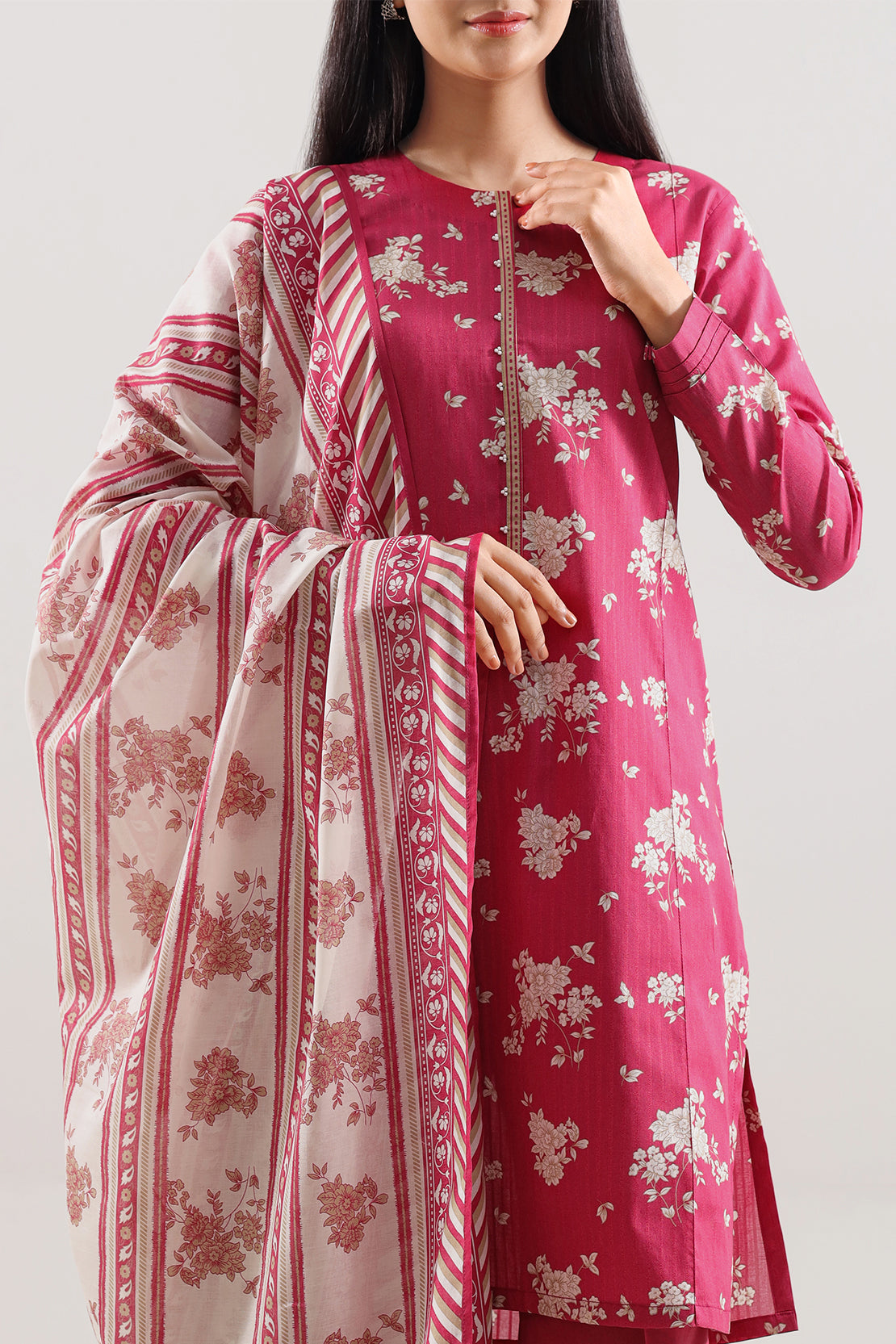 SAYA Unstitched Printed Strip Lawn 3-Piece Boasts Feather-Light Lawn Fabric With Elegant Striped Prints On Shirt Panel, Paired With Matching Dupatta And Complementary Trouser Panel. Offered For Daytime Gatherings, Seasonal Wear, Or Stylish Outings, It Provides Tailoring Flexibility, Breezy Comfort, And Timeless Appeal.