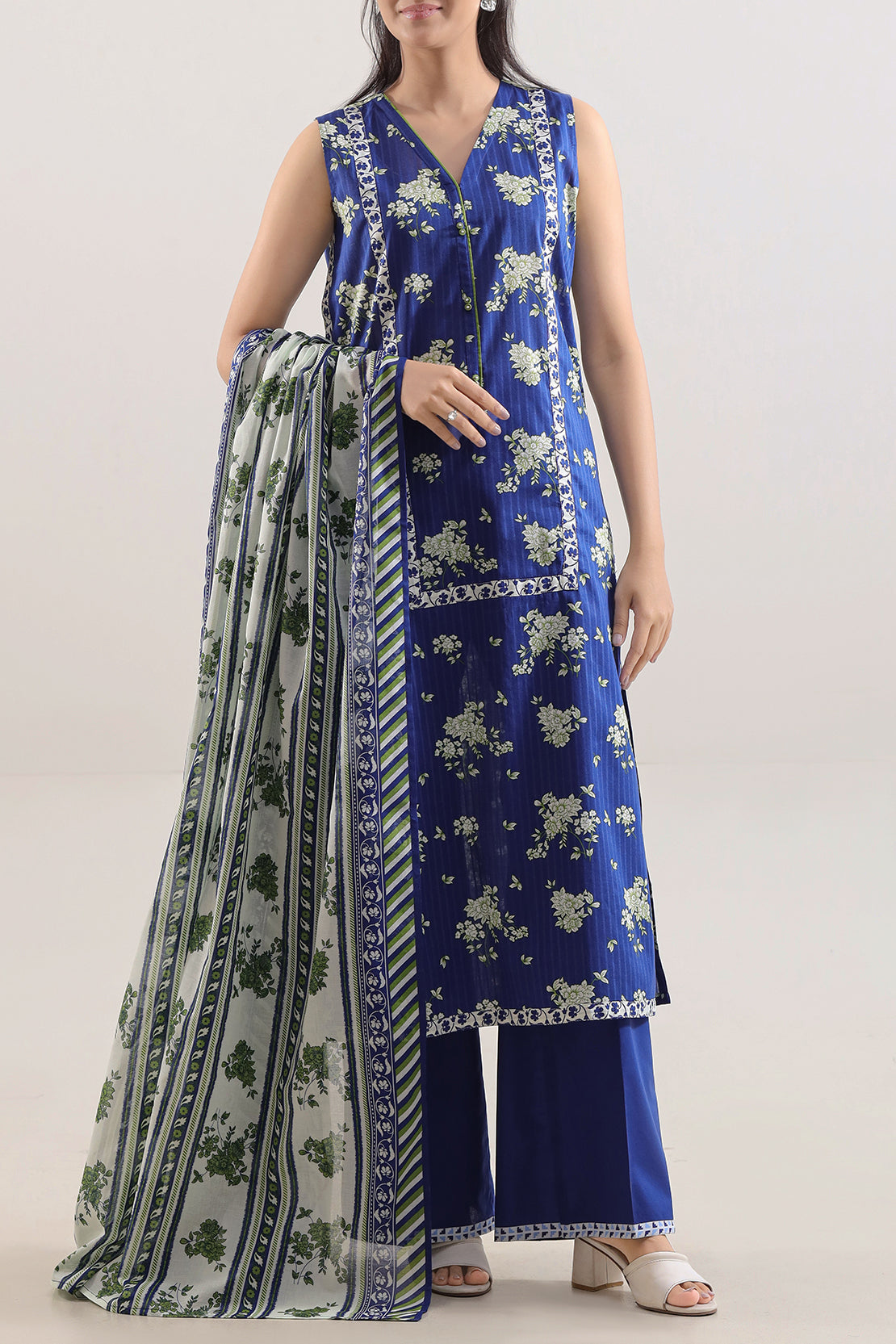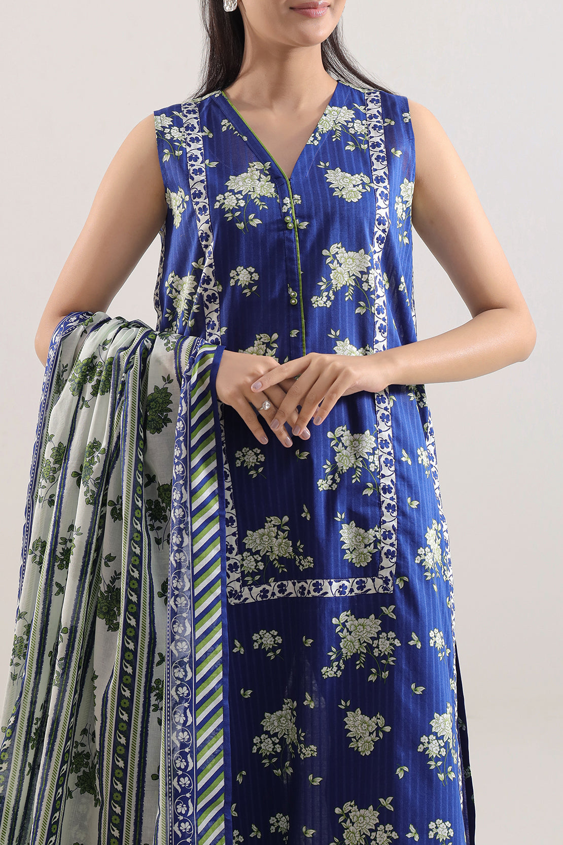 SAYA Unstitched Printed Strip Lawn 3-Piece Displays Airy Lawn Fabric With Elegant Striped Prints On The Shirt Panel, Accompanied By A Matching Dupatta And Complementary Trouser Panel. Perfect For Daytime Occasions, Warm Weather Or Casual Celebrations, It Offers Tailoring Freedom, Lightweight Comfort, And Refined Versatility.