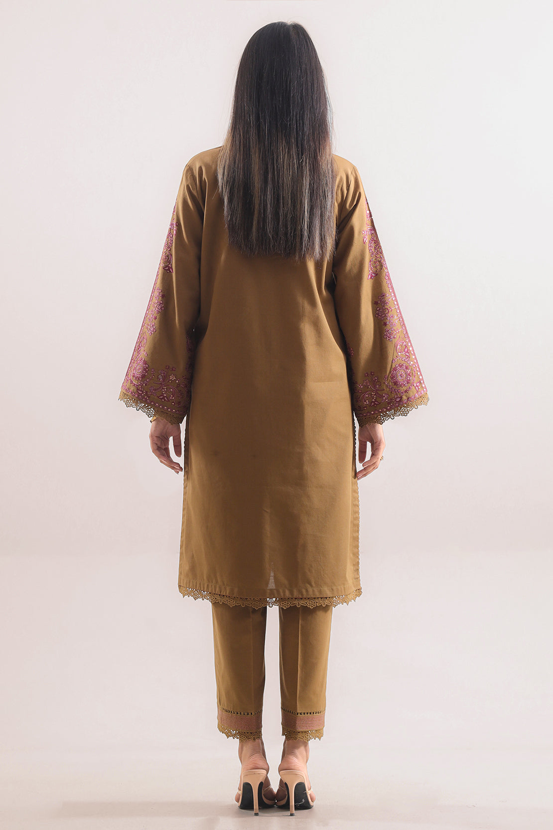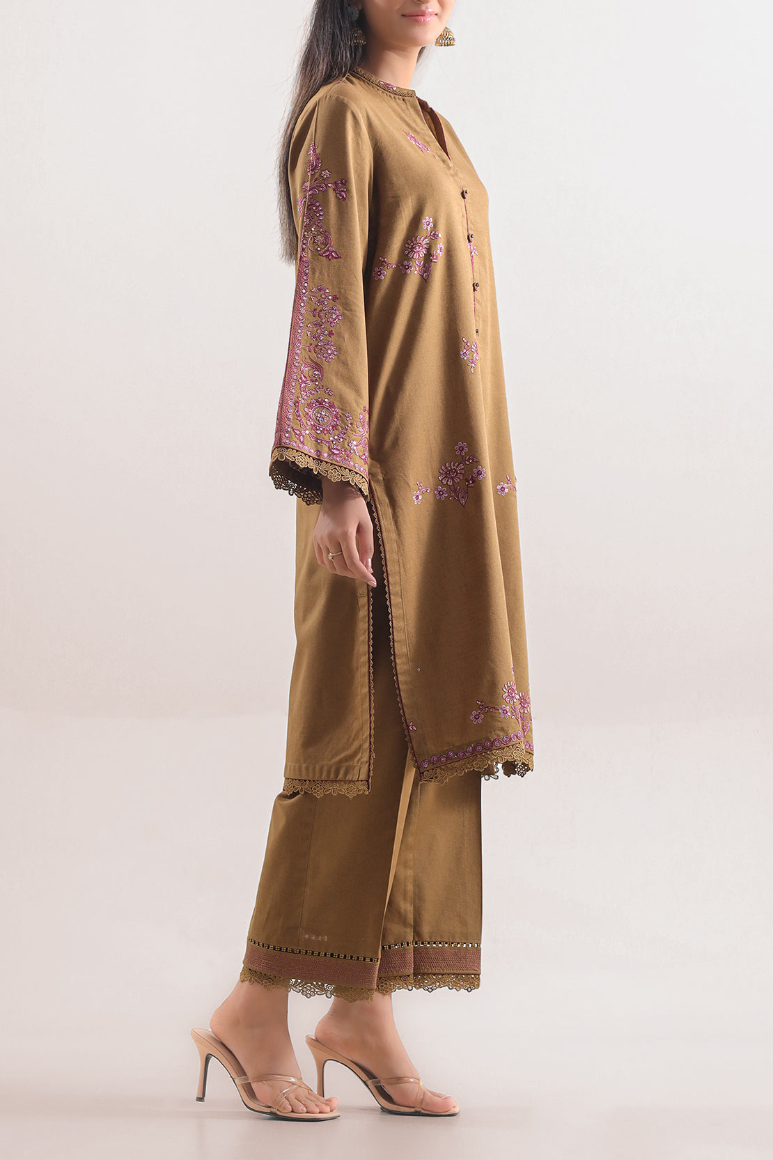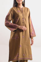 Unstitched Solid Embroidered Cotton Khaddar 2-Piece By SAYA Radiates In A Deep Light Brown Hue. Made From Premium Khaddar, It Offers Warmth, Softness, And A Refined Texture. Elegant Tone-On-Tone Embroidery On The Shirt Adds Subtle Flare, While The Matching Trouser Fabric Complements With Structure. Tailor Friendly And Versatile, This Set Is Ideal For Cooler Seasons, Office Gatherings, Or Festive Occasions Where Comfort Meets Sophistication.