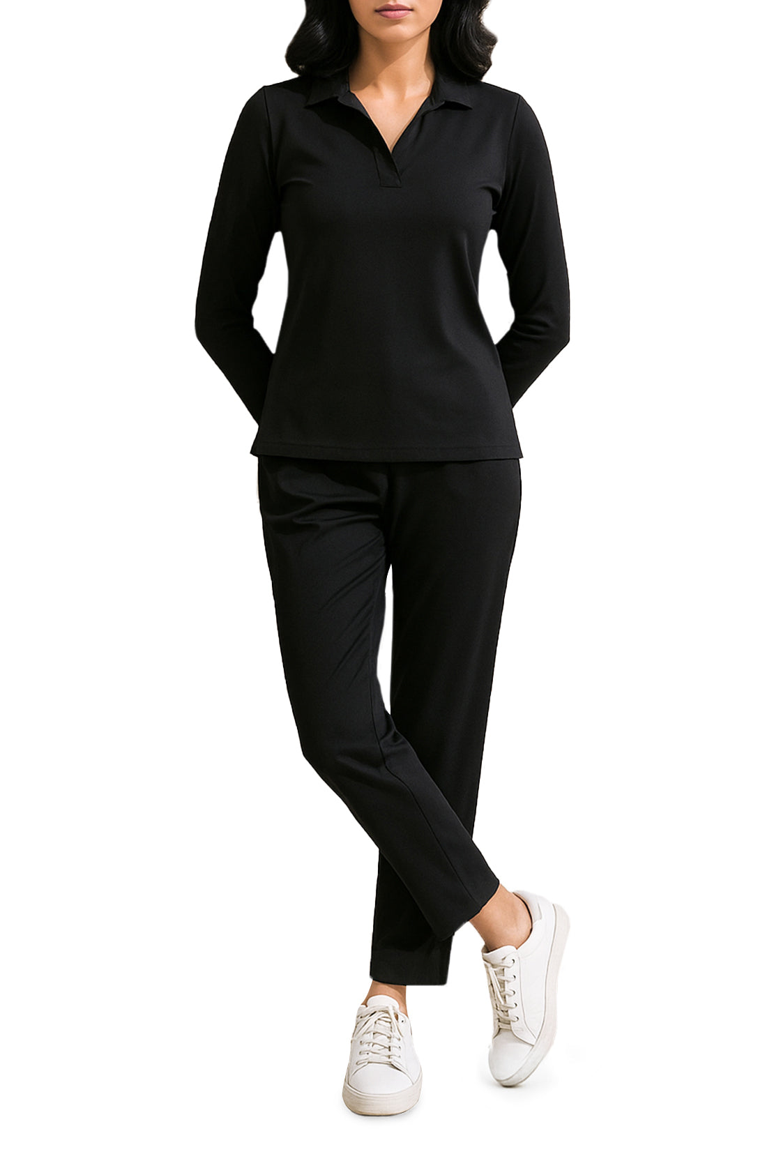 A Classic Wardrobe Staple, This Long Sleeve Polo In Deep Black Combines Timeless Design With Everyday Ease. Cut From Soft Cotton Piqué, It Features A Smart Collar And Button Placket For A Polished Look. Versatile Enough For Casual Or Semi-Formal Outings, It’s A Sharp Essential For Effortless, Modern Dressing.