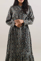 Striking And Understated, This SAYA Printed Arabic Lawn Stitched Dress In Deep Black Radiates Elegant Minimalism. The Premium Lawn Fabric Delivers Feather-Light Comfort And Breathable Ease While Maintaining A Polished Drape. The Arabic-Inspired Print Adds A Touch Of Cultural Flair, Enhancing The Monochrome Base With Subtle Intrigue. With Precision Stitching And Clean Finishes, The Dress Holds A Sleek Silhouette. Ideal For Evening Gatherings, Formal Occasions, Or Stylish Nights Out, It Balances Poise, Comfort, And Sophisticated Presence.