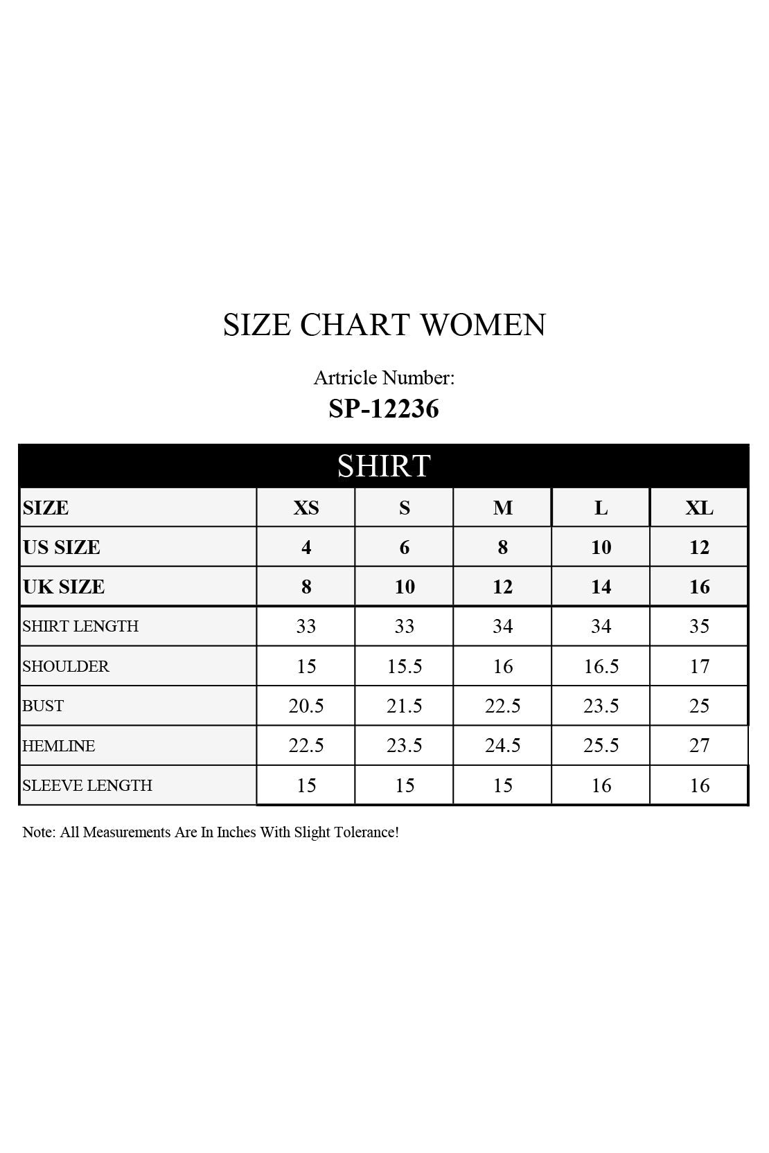 | Shirt Length | 0.5 | 44 | 44 | 45 | 45 | 46 |