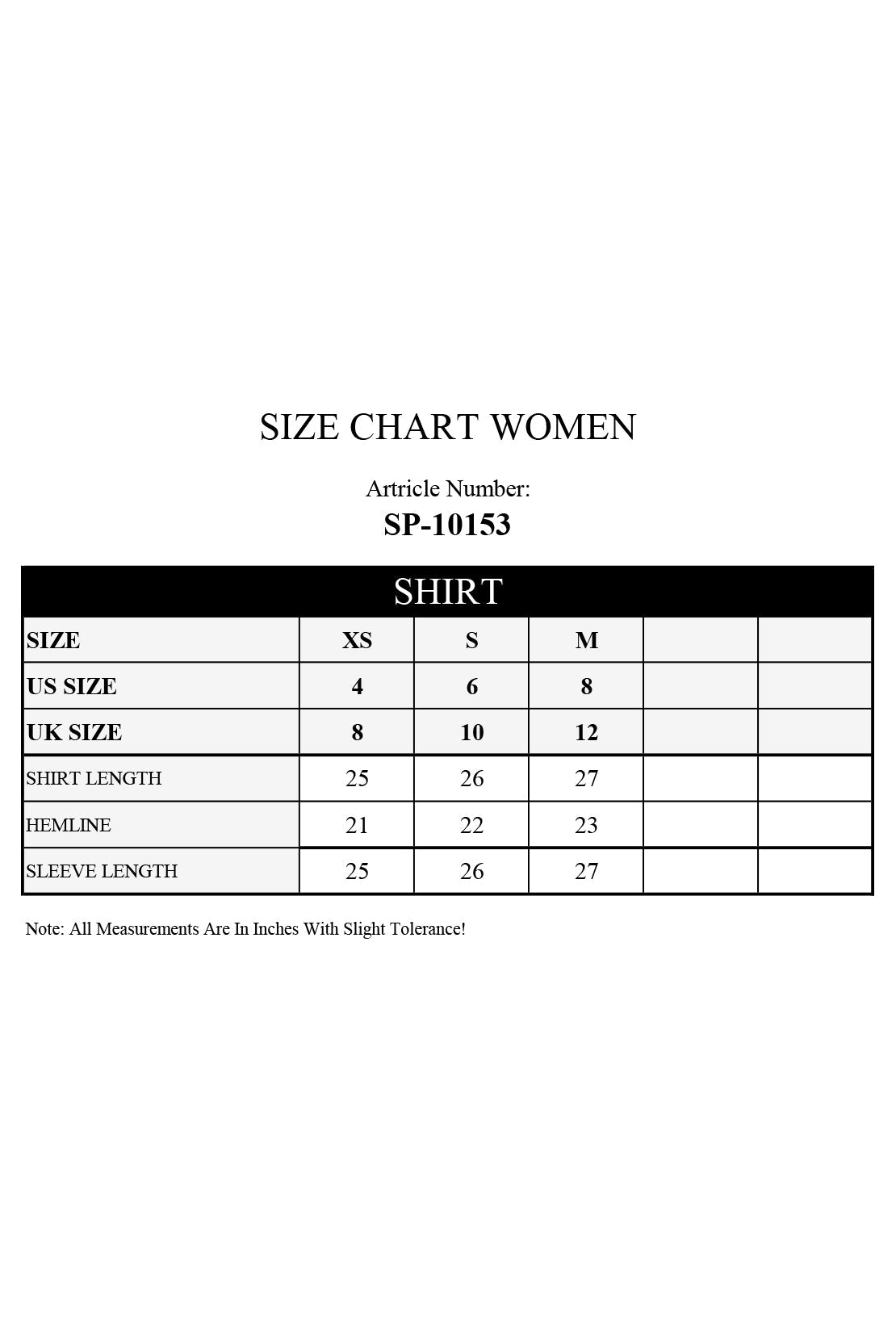 | Shirt Length | 0.5 | 44 | 44 | 45 | 45 | 46 |