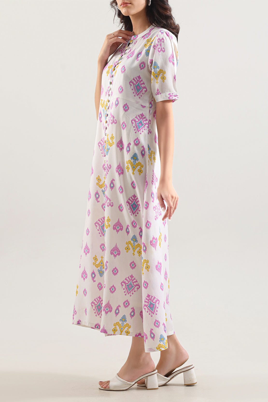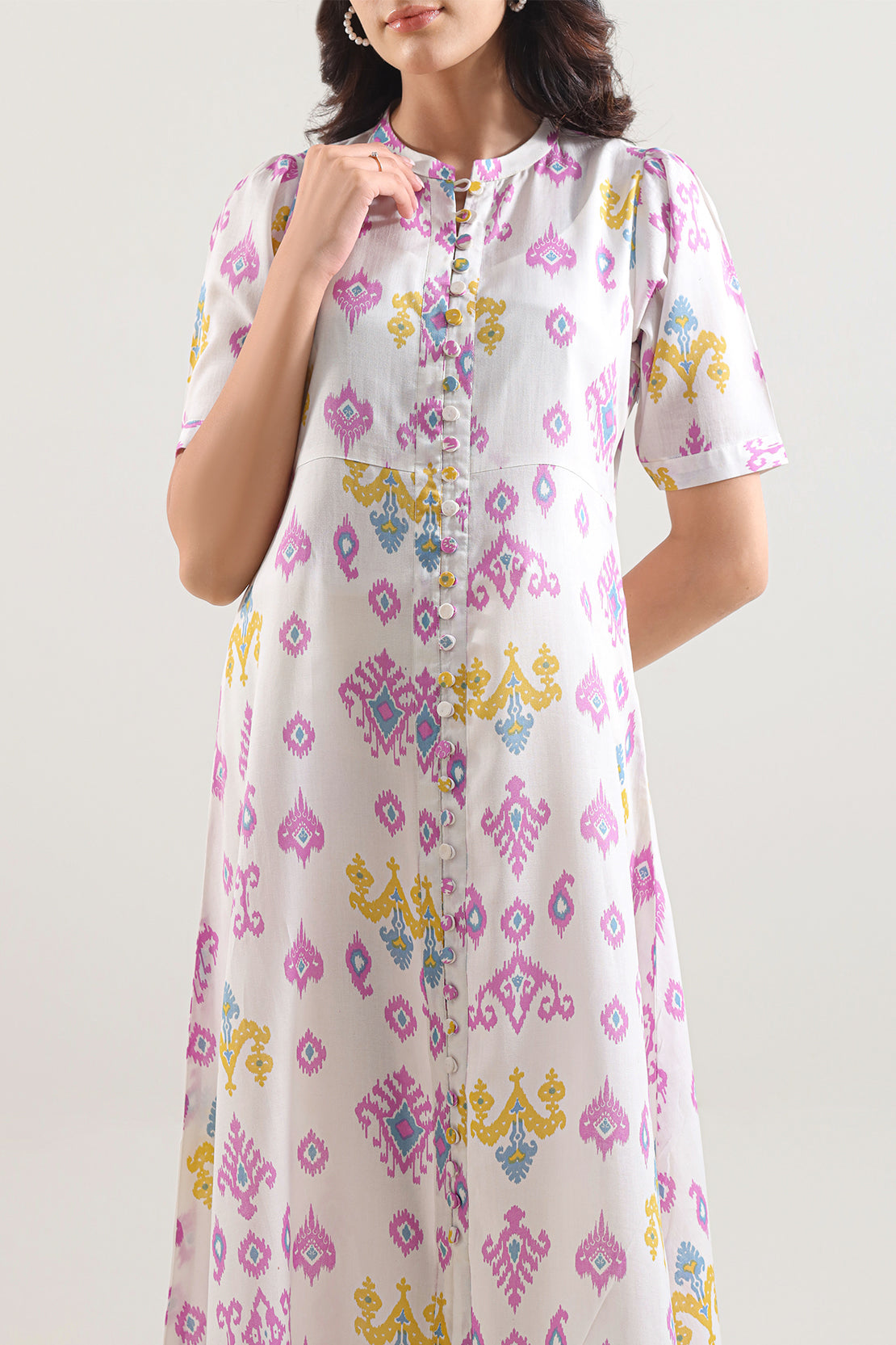 Indulge In Soft With The SAYA Printed Silk-Touch Stitched Shirt, Crafted From Silky Lyocell Fabric That Provides A Flowing Drape And Breathable Comfort. The Shirt Features A Sophisticated All-Over Print In Nude Or Olive Tones, Finished With Clean Tailoring And Sharp Stitching For A Ready-To-Wear Look. Ideal For Smart Casual Events, Evening Gatherings Or Comfortable Workdays—this Piece Combines Fabric, Print Appeal And Easy Styling With Ease.