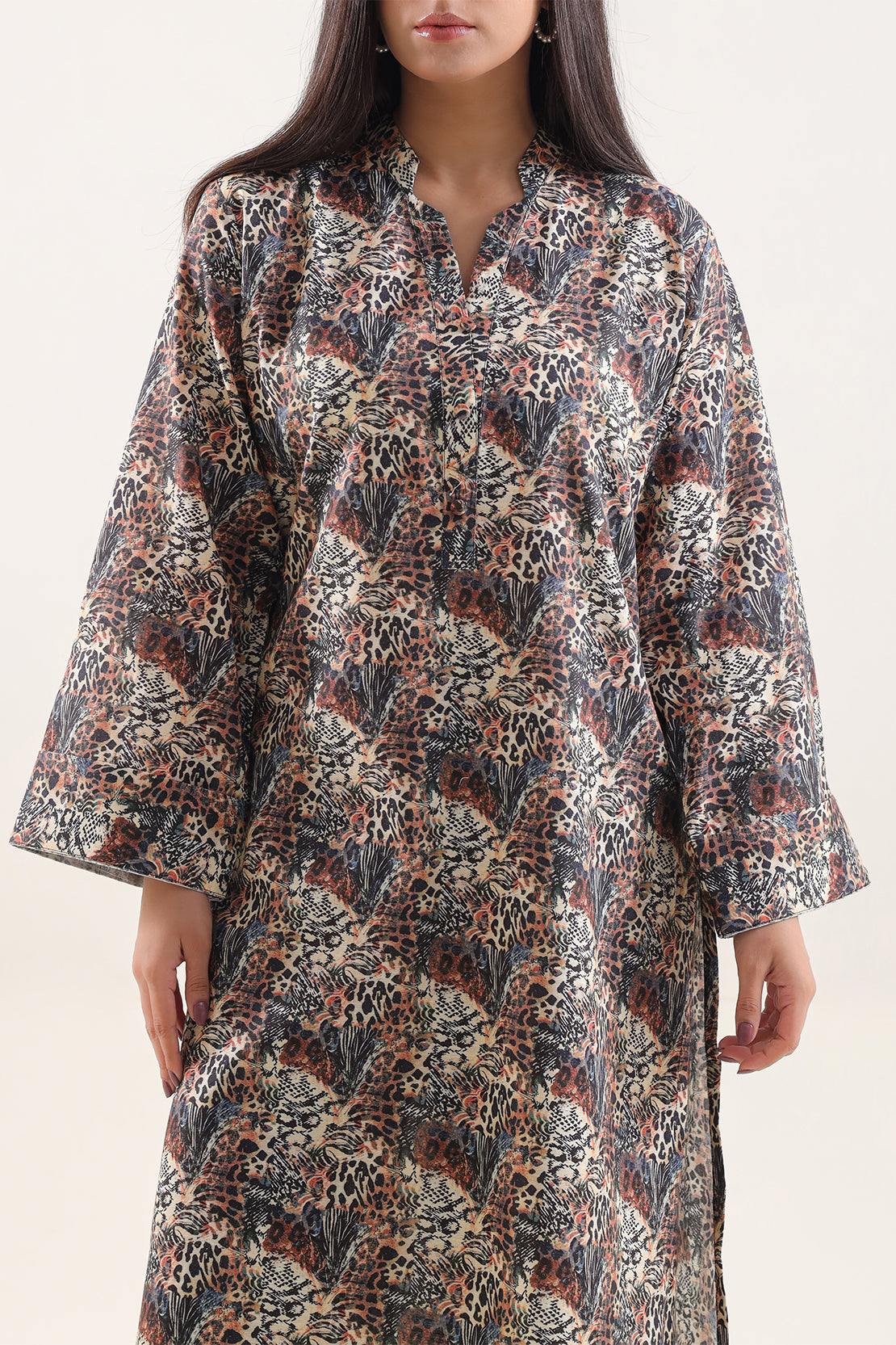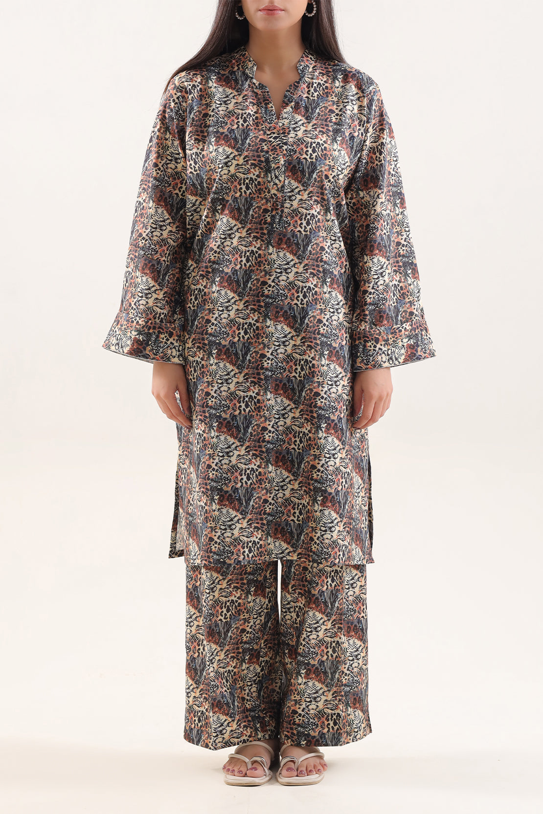 SAYA's Printed Khaddar Stitched Two-Piece Set Features A Contemporary All-Over Design On Textured, Breathable Fabric. Expertly Tailored For A Ready-To-Wear Fit, This Coordinated Ensemble Delivers The Distinctive Comfort And Rustic Charm Of Khaddar. Perfect For Autumn Gatherings, Cultural Events, And Casual Chic Outings, It Offers A Unique Synthesis Of Natural Warmth, Substantial Drape, And Effortless, Stylish Wearability.