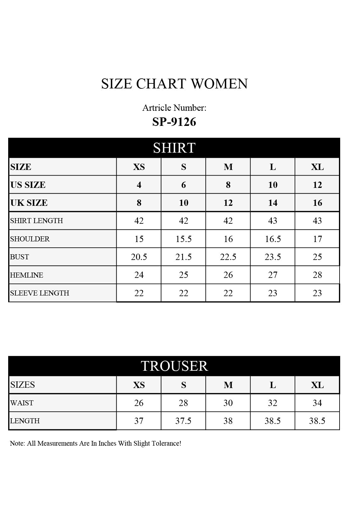 | Shirt Length | 0.5 | 44 | 44 | 45 | 45 | 46 |