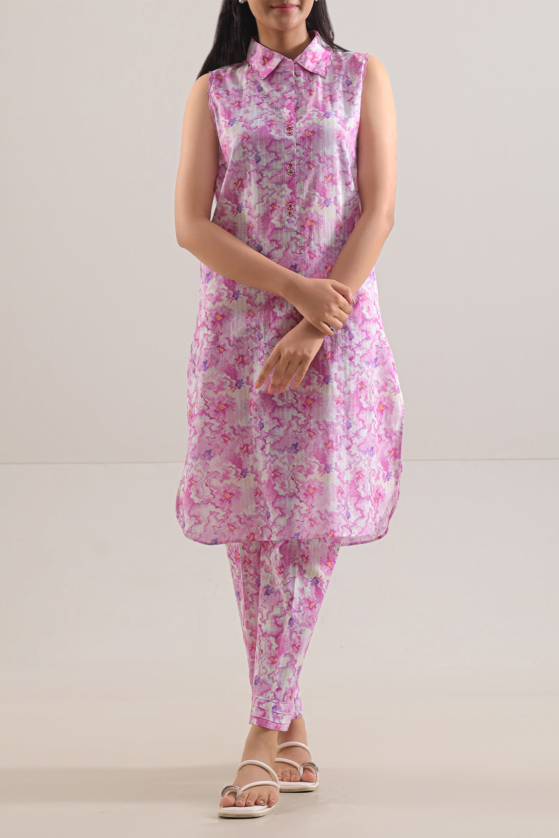 A Lightweight Ready-To-Wear Two-Piece Ensemble Crafted From Ultra-Soft Lawn Fabric That Blends Breathable Comfort With Tailored Sophistication. The Stitched Shirt Features A Delicate All-Over Print That Enhances Subtle Elegance, While The Matching Trouser Complements With Clean Structure And Practical Simplicity. This SAYA Set Offers Effortless Wearability And Polished Everyday Style—Perfect For Casual Chic, Smart Daytime Dressing, Or Refined Seasonal Statements.