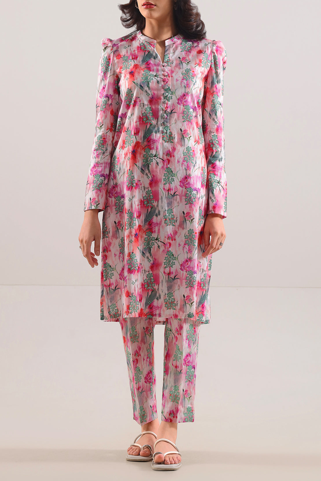 Printed Strip Lawn Stitched Two-Piece Shirt & Trouser By SAYA, Made From Lightweight Breathable Fabric That Keeps You Cool And Comfortable. The Shirt Features Vertical Stripes Over A Sophisticated Pink Base, Matched With A Ready-To-Wear Trouser For A Coordinated Chic Appeal. Fine Stitching And Clean Hemlines Provide Durability And Polished Finish. Ideal For Daytime Events, Smart Casual Outings, Or Everyday Styling With An Elegant Touch.