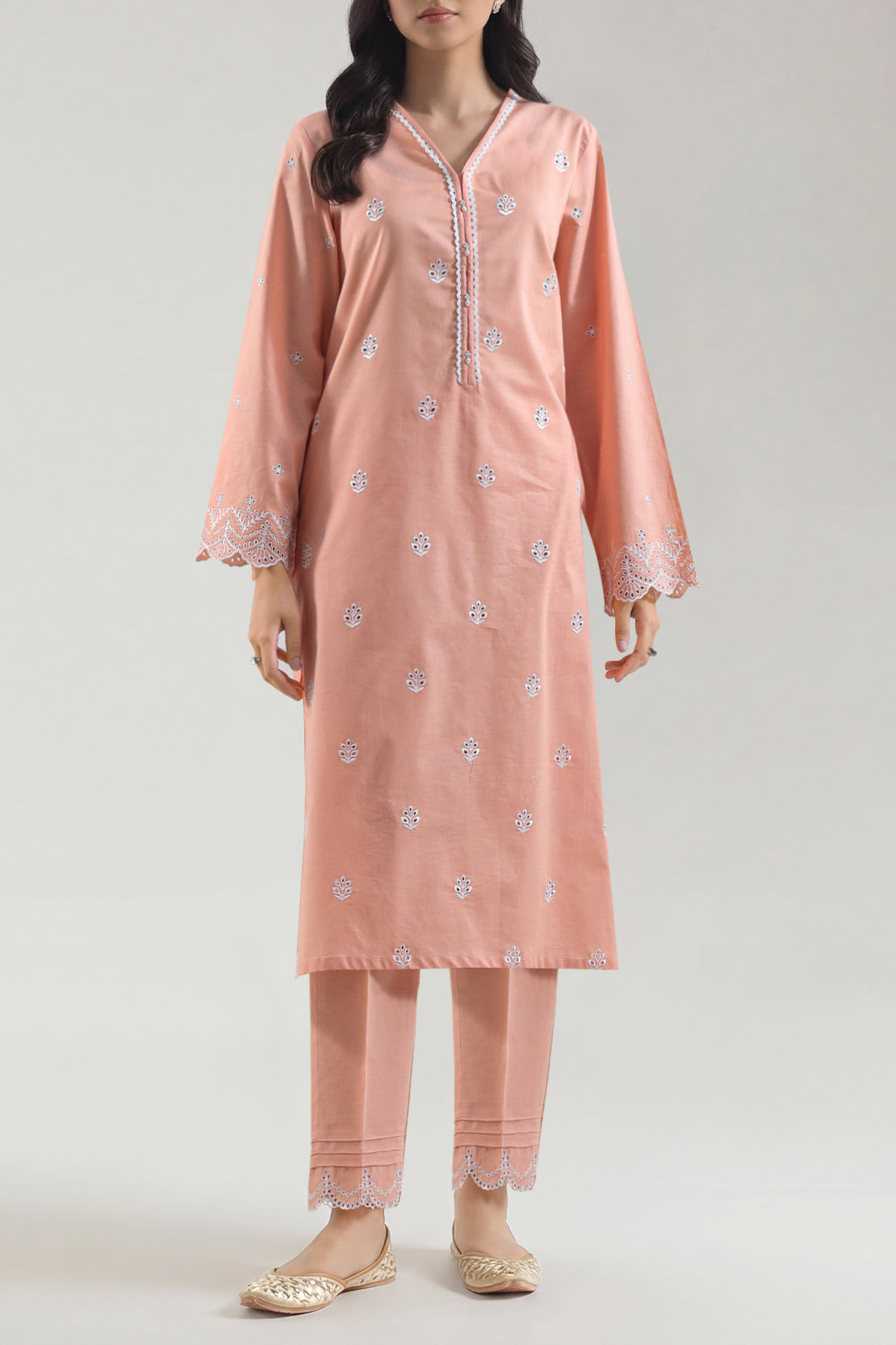 Elevate Your Day-to-Day Elegance With SAYA’s Solid Embroidered Cambric 2-Piece Set In Light Peach, Crafted From Premium Cambric Fabric Known For Its Smooth Texture And Breathable Comfort. The Shirt Showcases Elegant, Subtle Embroidery That Adds Depth Without Overpowering, While The Coordinated Trouser Offers A Clean, Ready-To-Wear Fit. The Soft Light Peach Hue Brings Warmth And Versatility—Making It Ideal For Daytime Events, Smart-Casual Gatherings, Or Refreshing Your Everyday Wardrobe. This Set Effortlessly Marries Comfort, Style, And Ease.