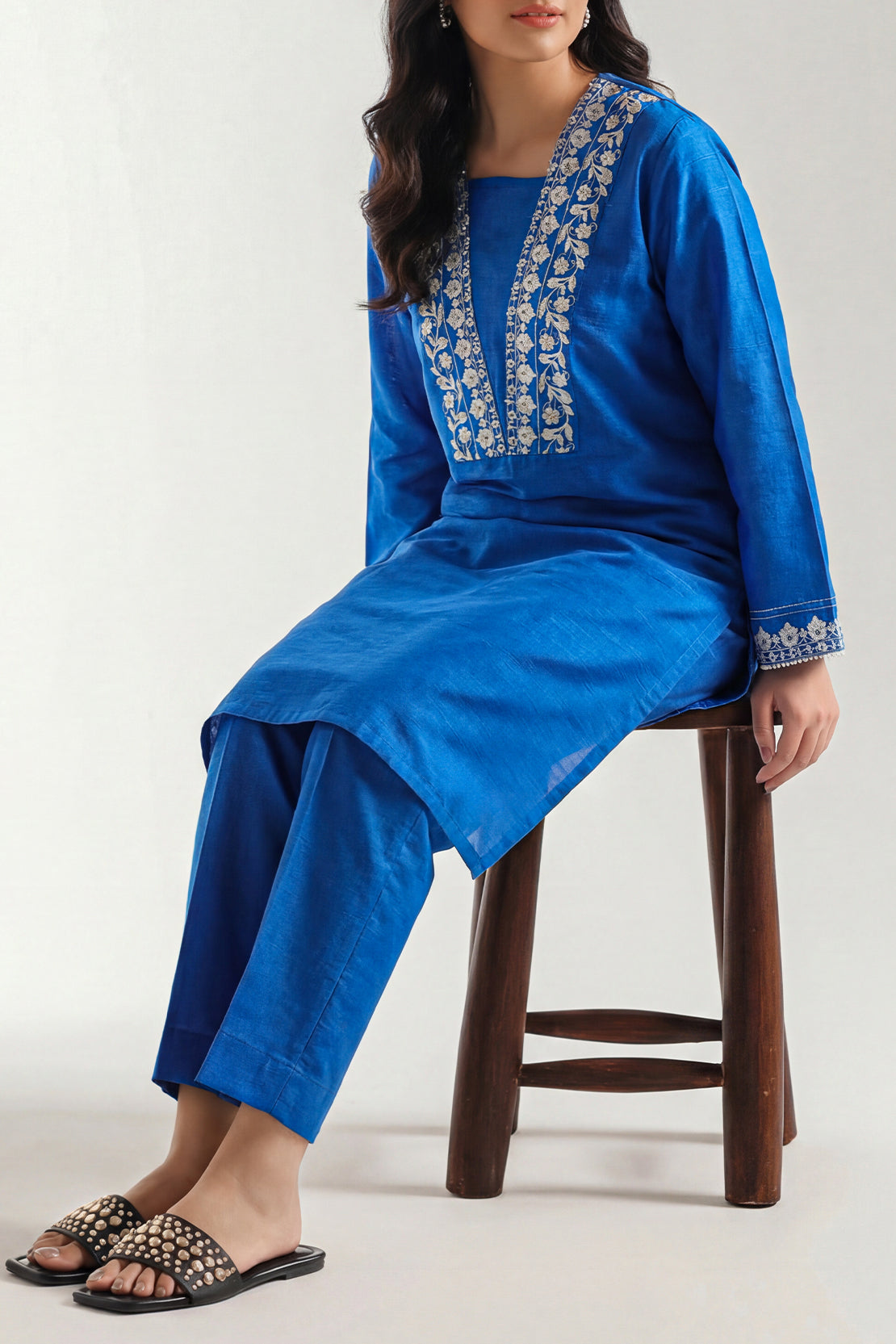 Master Winter Sophistication In The SAYA Solid Embroidered Khaddar Shirt & Trouser Set. Expertly Tailored From The Classic, Textured Khaddar Fabric, This Ensemble Is Refined With Delicate Embroidered Accents That Add A Touch Of Bespoke Luxury To The Warm, Substantial Base. Its Sharp, Modern Silhouette Is Designed For Formal Winter Receptions, Cultural Celebrations, And Events Demanding A Look Of Refined, Season-Specific Elegance.