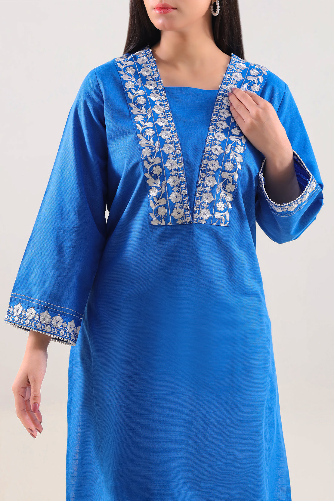 Ready To Wear Khaddar Solid Embroidered Stitched Shirt.