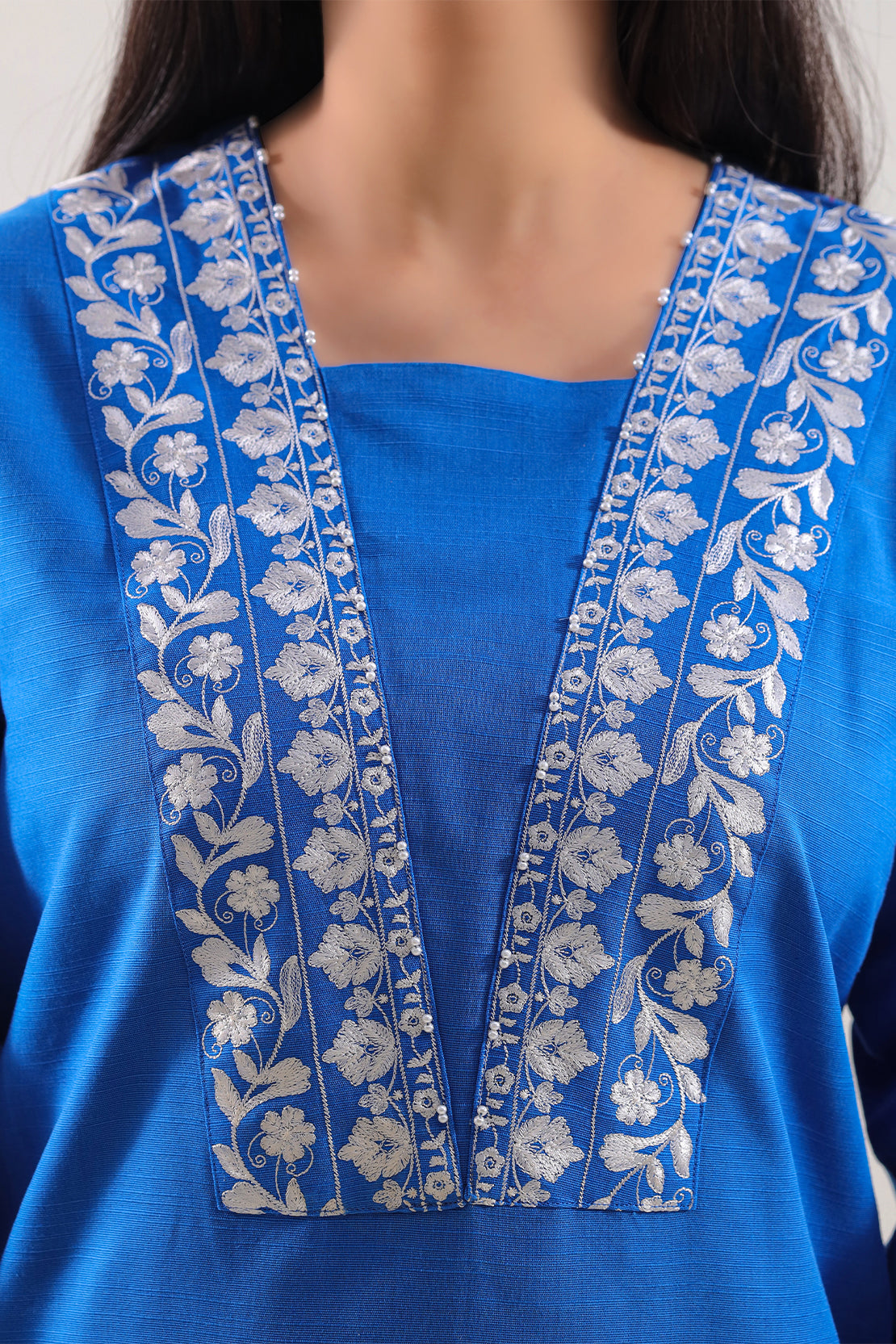 Solid Embroidered Khaddar Stitched 2 Piece (Shirt/Trouser)