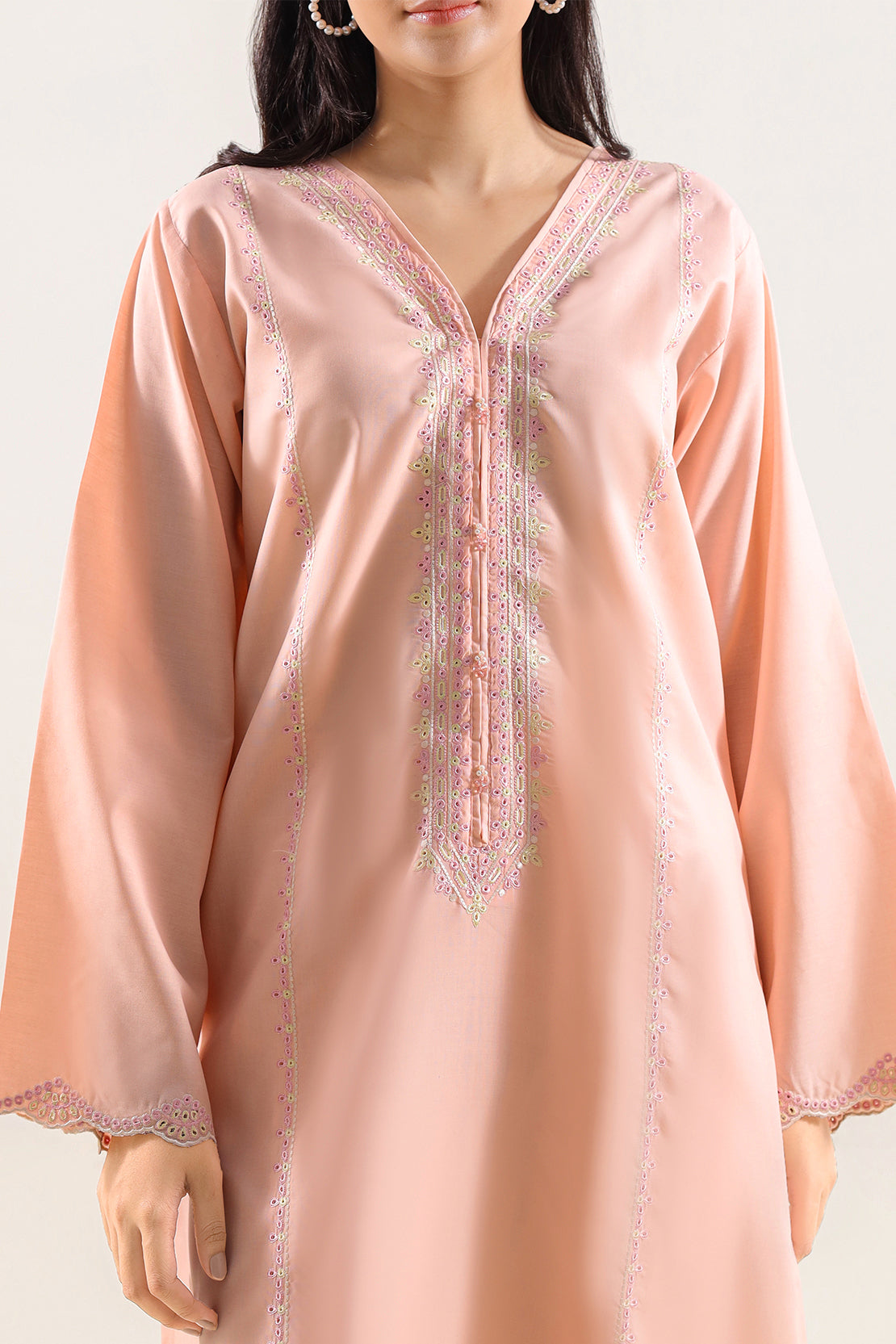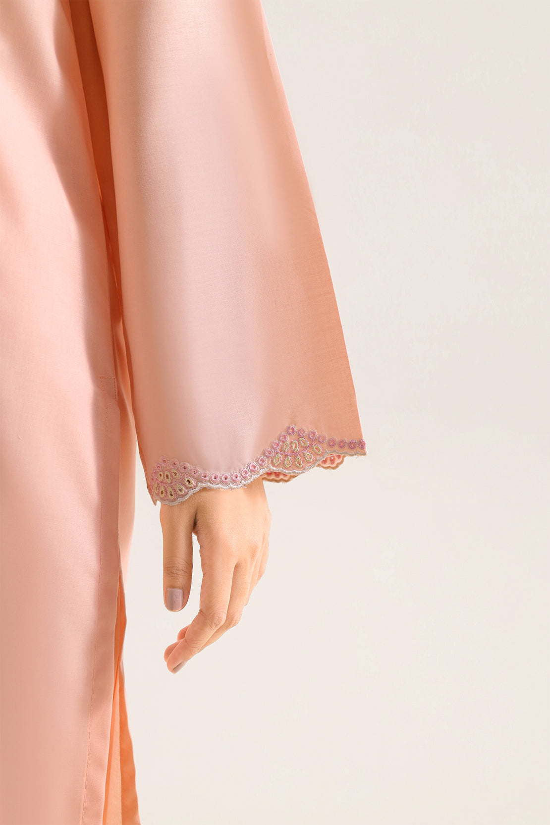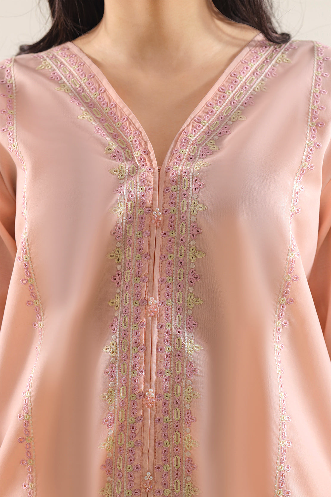 SAYA's Solid Embroidered Polyester Two-Piece Set Showcases Meticulous Hand-Embroidered Details On A Durable, Easy-Care Fabric. Expertly Tailored For A Ready-To-Wear Fit, This Coordinated Ensemble Delivers A Polished Silhouette With A Subtle Sheen. Perfect For Festive Gatherings, Special Occasions, And Events Requiring Lasting Elegance With Minimal Upkeep, It Offers A Harmonious Blend Of Artisanal Craftsmanship, Modern Versatility, And Practical Sophistication.