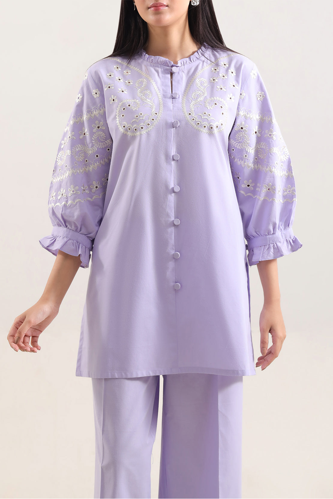 Ready To Wear Solid Embroidered Poplin Stitched Shirt.