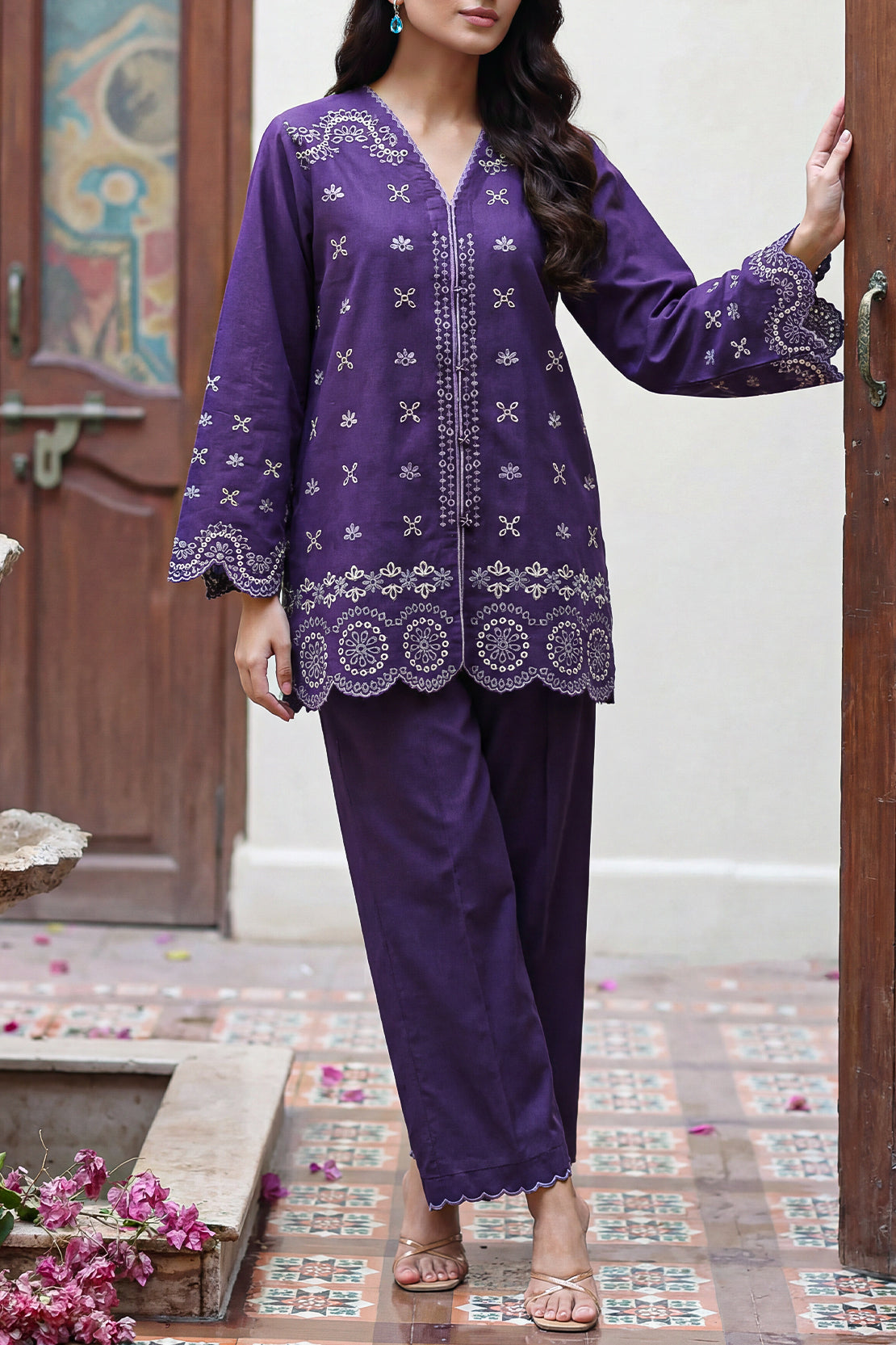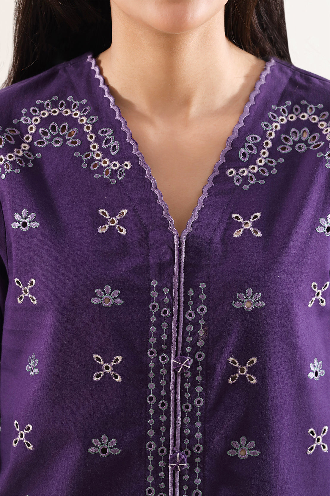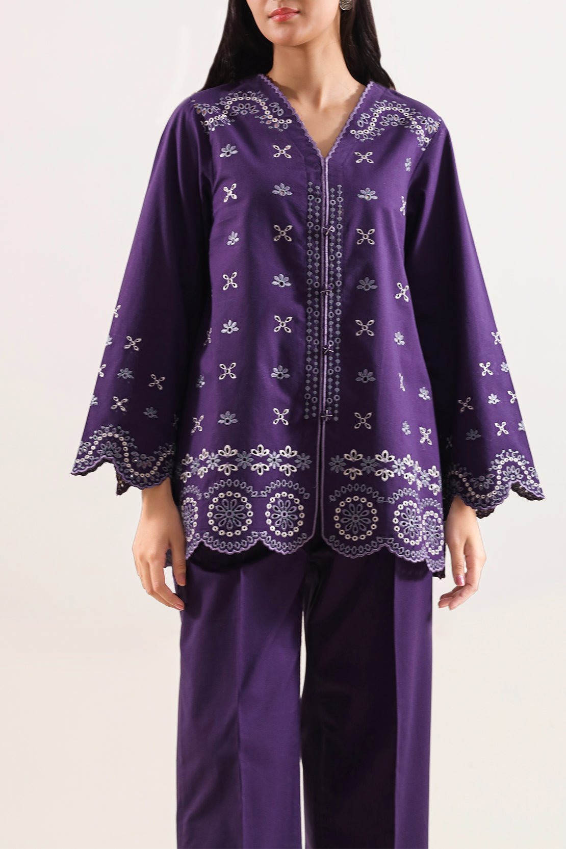 Tailored From Poplin Fabric, This 2-Piece Suit By SAYA Delivers A Smooth, Crisp Texture That Feels Lightweight Yet Structured — Making It Perfect For Everyday Wear And Warm Weather Comfort. The Shirt Features Subtle Embroidery Detailing That Adds A Touch Of Refined Elegance Without Overpowering The Clean, Solid Base. The Coordinated Trouser Complements The Shirt With A Balanced Silhouette And Comfortable Fit, Ensuring Ease Of Movement Throughout The Day.